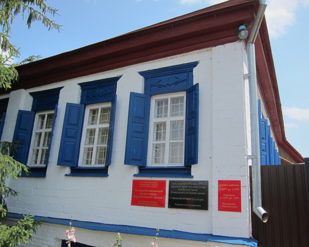 Мемориальный музей Первой конной армии находится в селе Великомихайловка в доме, где 17 ноября 1919 года революционный военный совет принял решение о создании Первой конной армии под командованием Будённого С.М.
