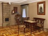 Музей занимает деревянный особняк середины ХIХ века. Экспозиция содержит два раздела: на первом этаже - «Мир забытых вещей», открывающий посетителям культуру и быт горожан в дореволюционную эпоху. Здесь воссозданы типологические интерьеры к. XIX-начала XX вв.: гостиной, столовой, детской и кабинета.
