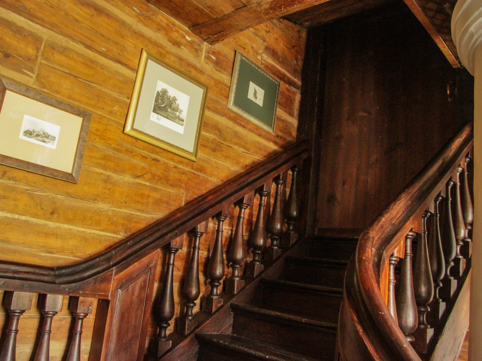 Внутри дома сохранилось анфиладное построение, лестница, ведущая на второй этаж, с перилами и точеными балясинами, филенчатые двери и кафельные печи.