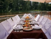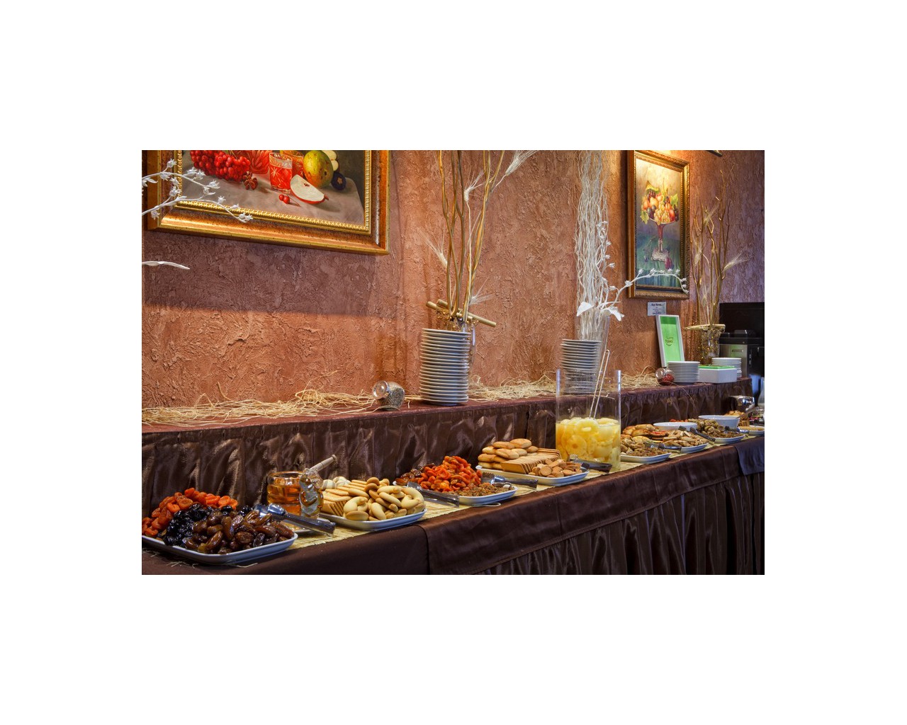 В течение всего дня с 8-00 до 23-00 разливное пиво, кофе, чай, выпечка, фрукты, соки, пепси-кола, минеральная вода, алкогольные напитки (вино, водка, шампанское).