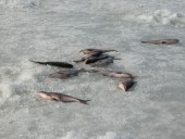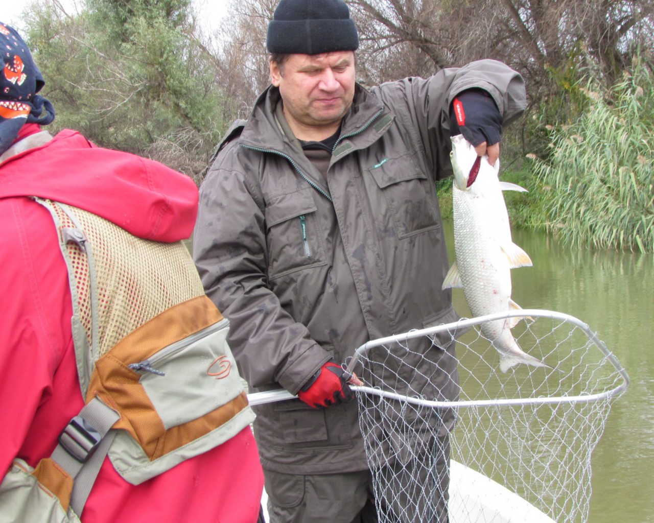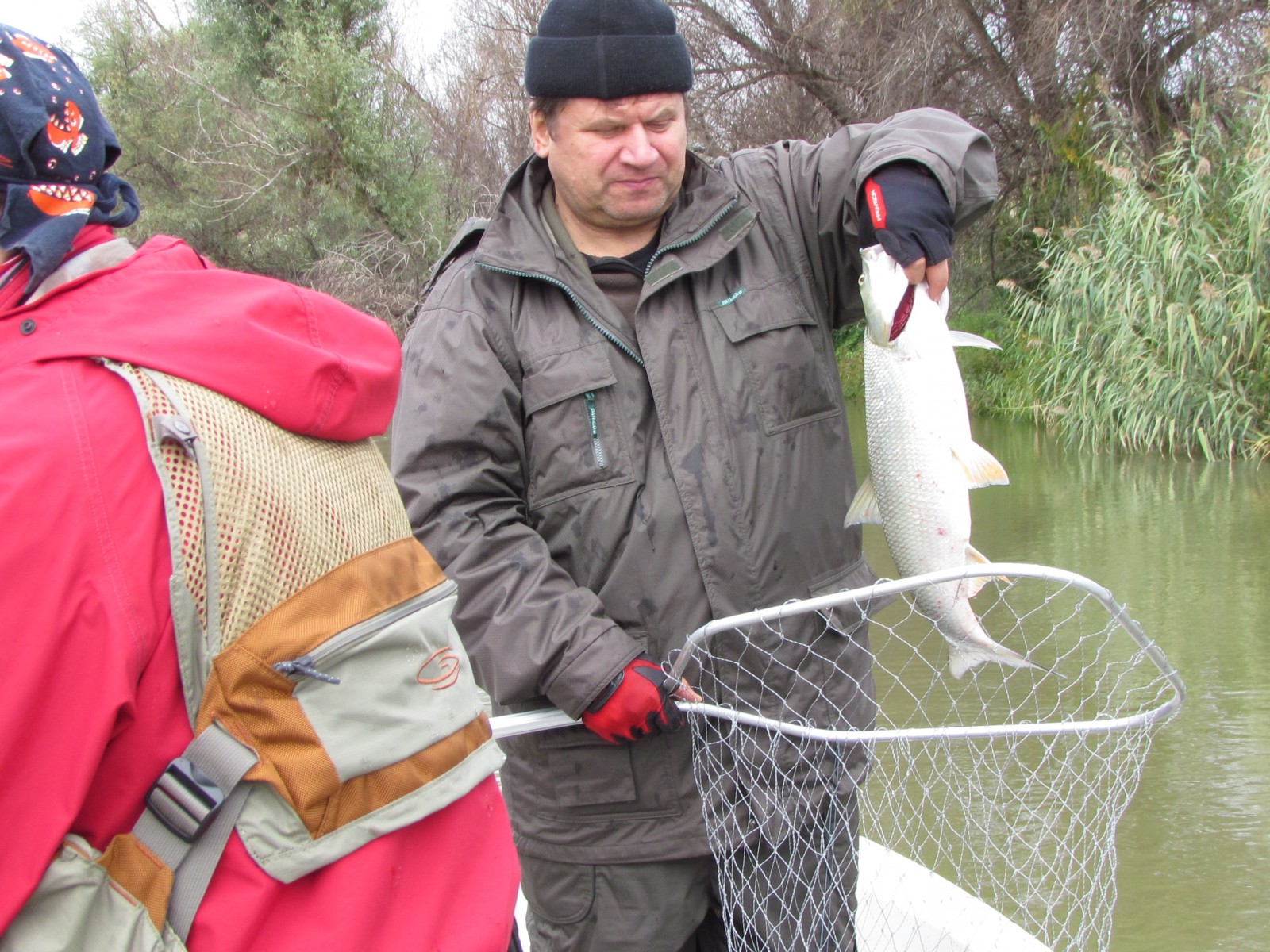 Следующее утро было трудным )))),..после завтрака в 7:30 погрузились в бударку и,проплыв максимум киллометр встали.Егерь сказал,что ловить будем здесь- воблу.На наш немой вопрос ответил,с 20 апреля введен запрет на ловлю ниже по течению...((((( Это была ГЛАВНАЯ ЗАСАДА!!(((( на все наши предложения и немёки .....отвечал твердым ОТКАЗОМ !! ( молодец!!) . Маленькое отступление: в низовье Волги ездим уже 12 лет ,два раза в год (апрель,октябрь) на других базах егеря возили на Раскаты в любое время....Поклевки воблы начались сразу же ))) попадались зачетные экземпляры и часто)))Егерь тоже принимал активное участие в ловле, и к нашему стыду облавливал нас троих!!!! ( он ловил на своего местного червя !!!, а мы привезли Московского с Птичьего рынка) пришлось его не много раскулачить )))) ,хотя брала рыба на всё!! червь,опарыш,кукуруза.Через 2 часа оба ведра были полными ( причем брали только большую, меньше 17 см отпускали,об этом сразу предупредили на базе) Любитель пива выпал из нашего внимания , и за это я чуть не поплатился на обратной дороге в Москву , он брал всё подряд,любимая фраза у него- " Детям!! " В Харабалях меня остановили ДПСники ,и инспектор начал ЛИНЕЙКОЙ !!!! мерить рыбу!,а так как я ехал с "заботливым отцом ", его рыба была у меня и пара штук явно не дотягивала до 17 см..простили )))). Погода была 18-20 градусов,но донимал ветер !!! По возвращению на базу всю рыбу отдали егерю на засолку ( всем процессом приготовления и обработки рыбы заведуют егеря !!! ,на территории базы этим заниматься запрещено, ещё один плюс !!!) При входе в корпус все переобуваются в сланцы , но они у всех одинаковые!!!! ( как их различить??)) ) А у нас были другие )) . Все рыболовные снасти оставляют в комнатке при входе в корпус, но....она очень маленькая...(((( После обеда и 1,5 часового отдыха вышли,кто мог )))) на окуня..уже выше по течению км 3-3,5. временами брал 500-600 граммовый ( его отдали на заморозку , дома закоптили ). Примерно так и прошла неделя.. Итог: плюсов много!!! Доброжелательность персонала,номера,питание,освобождение от заготовки рыбы ( не дорогое)) ), ежедневная уборка в номерах. Но есть и мааааленькие минусы : после закрытия столовой примерно в 21 час нет возможности найти кипятка для кофе(( привык как то принять чашечку перед сном ))) И на счет запрета ловли..соседи по столовой рассказывали,что сплавлялись ниже и ловили ( может из за того,что они были сотрудниками банка,а мы так,со стороны ?(((( ), но это уже наш косяк ,что не во время приехали. Обратная дорога домой заняла 18 часов ( после Михайловки оторвались от "ветеранов" на Ниве и пошли своей скоростью) , но итог этого -тесное общение с "продавцами полосатых палочек" и лишние 25 литров бензина. И ещё маленькое напоминание : Никогда на проезжайте через г. Волжский !!!! фронтовая дорога через Волгоград Вам покажеться автобаном !!!!