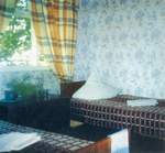 Однокомнатные трехместные: на втором этаже коттеджа с отдельным входом, имеют коридор - прихожую, санузел (умывальник, туалет, душ от солнечных батарей), балкон, три полутороспальные кровати, стулья, тумбочки, вешалка, радиоточка.