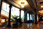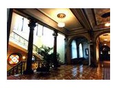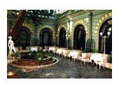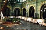 Прекрасный вестибюль ведет в ресторан, бар, казино. Мраморная парадная лестница с колоннами и кованым обрамлением перил, художественный паркет, цветные витражи и великолепные хрустальные люстры создают атмосферу торжественности.