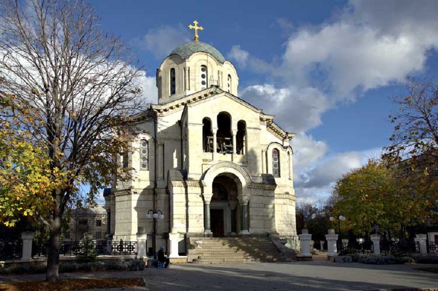 Идея создания Владимирского собора в Севастополе принадлежала главному командиру Черноморского флота и портов адмиралу А.С. Грейгу (1775–1845). Еще в 1825 году он добился Высочайшего разрешения установить в Херсонесе храм–памятник в честь «крестителя Руси» – Святого Князя Владимира. Архитектор К.А. Тон (1794–1881) разработал проект собора. В 1842 году по ходатайству адмирала М.П. Лазарева (1788–1851) – главного командира Черноморского флота – было принято решение о его строительстве в центре города. Официальная закладка состоялась летом 1854 г., в разгар Крымской войны. До начала осады Севастополя оставалось два месяца. За это время успели вывести фундамент будущего собора, построить подвальный этаж. Военные действия в Крыму и Севастополе прервали строительные работы.