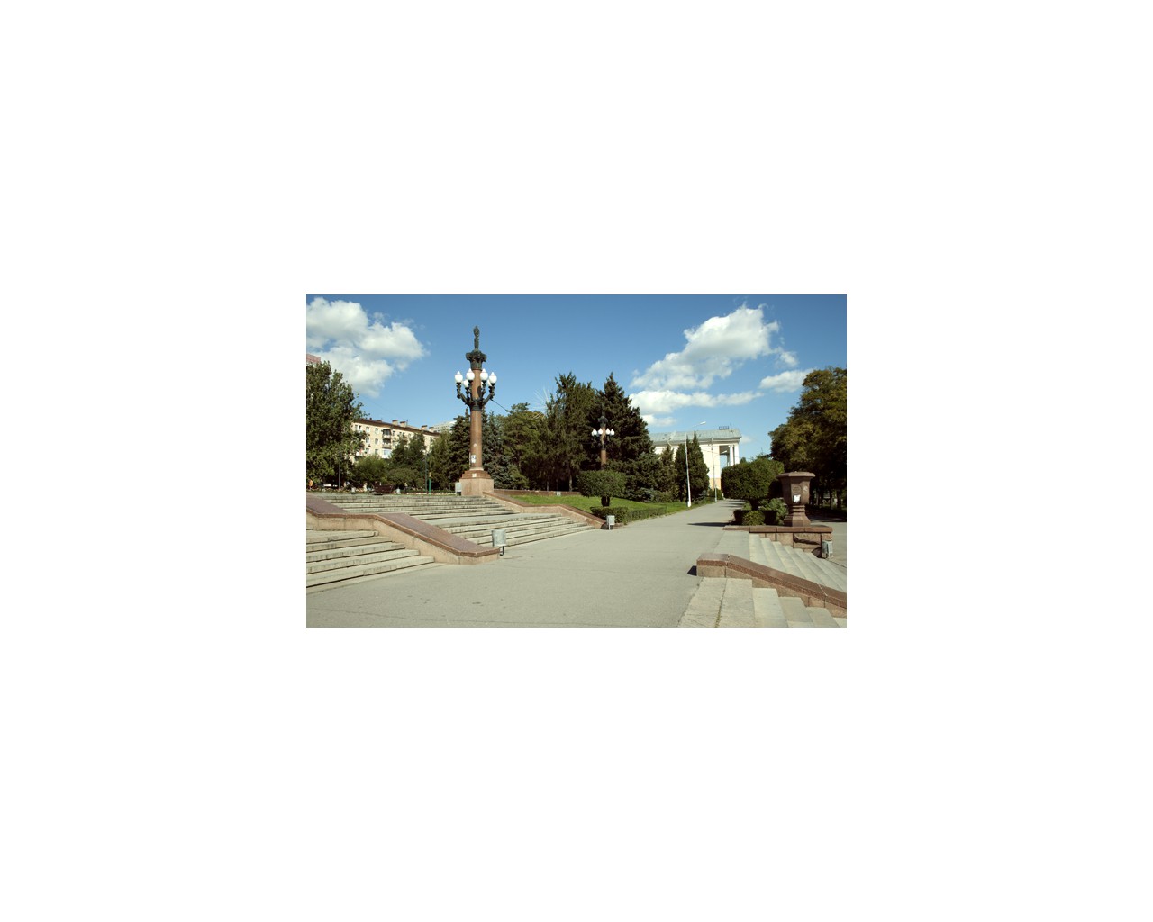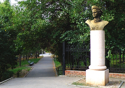 Через перекресток выходим к парковой зоне по ул. имени Чуйкова. Здесь приятно прогуливаться, кататься на роликах, сидеть на лавочках и заниматься утренними пробежками. Слева жилые дома, несколько интересных кафе, выставочный зал музея изобразительных искусств. Справа среди деревьев мелькает Волга. В самом парке среди ухоженных аллей - памятник маршалу Советского Союза Василию Ивановичу Чуйкову. «Есть в огромной России город, которому отдано мое сердце... Он вошел в историю как Сталинград» . В годы Сталинградской битвы Чуйков командовал 62-ой Армией, оборонявшей центральную часть города.