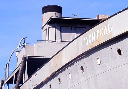 Памятник морякам-речникам Волги — бронекатер «Гаситель»