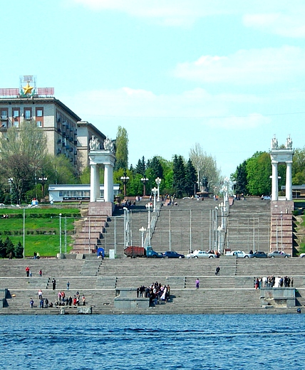 Там, где Волга делает живописный величавый поворот, достигая почти 2-х километров в ширину, массивными гранитными ступенями спускается к реке одна из красивейших набережных мира.