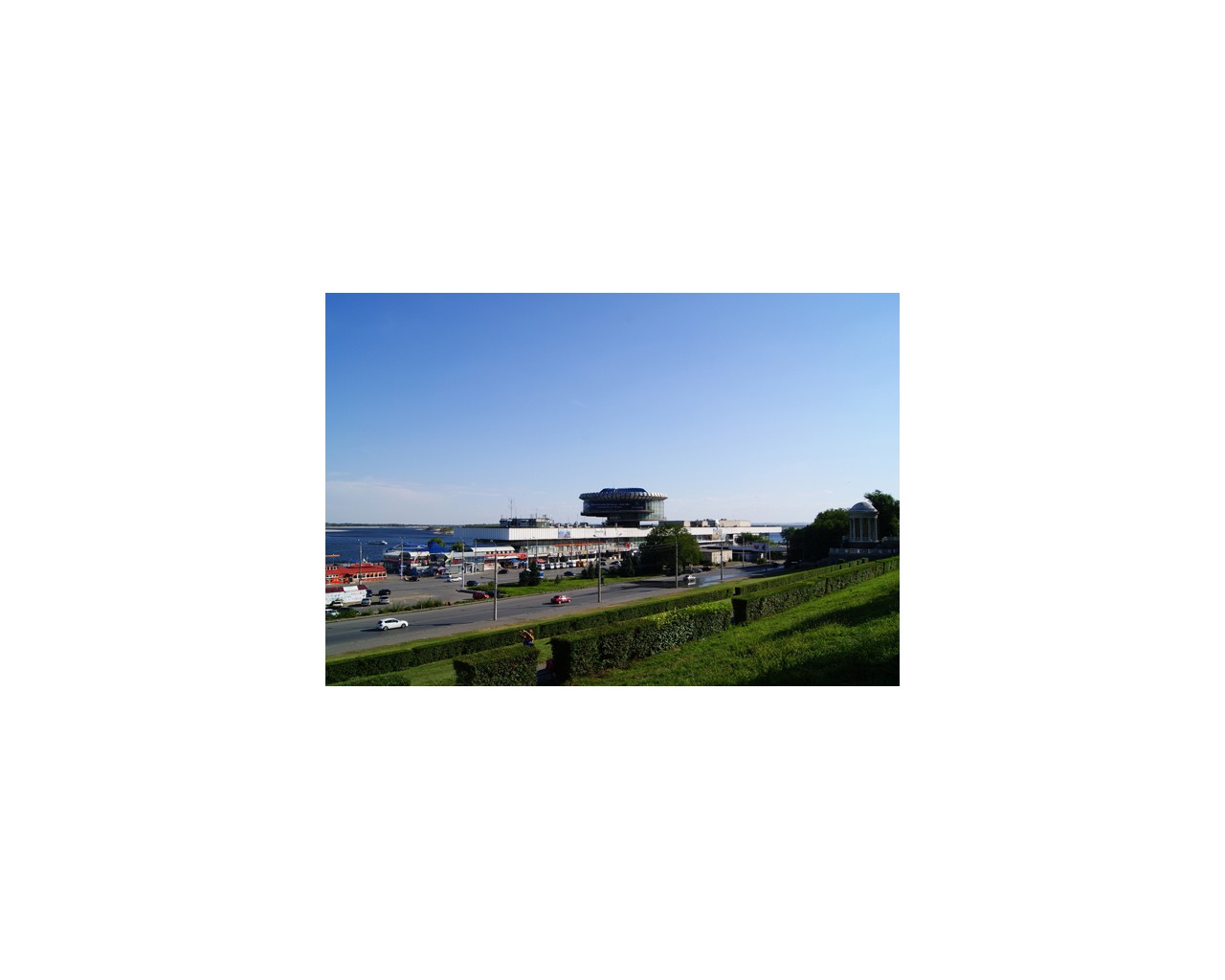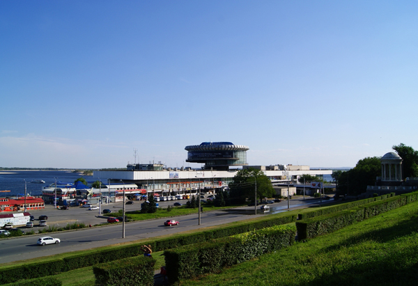 Речной вокзал расположен по правую сторону от лестницы. Здание воказала, длиною почти с Красную площадь в Москве, вмещает в себя:
