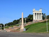 Напротив речного вокзала с 1940 года стоит памятник Герою Советского Союза летчику Хользунову Виктору Степановичу: в 1919 году защищал город от белогвардейцев, участвовал в национально-революционной войне в Испании в 1936-1937 годах, с ноября 1937 года командовал 1-й армией особого назначения - одной из трёх авиационных армий резерва Главнокомандования. Погиб при проведении испытательных полетов в 1939 г. Памятник летчику во время войны был сброшен с пьедестала, но уцелел. Впоследствии восстановлен на прежнем месте в первоначальном виде.