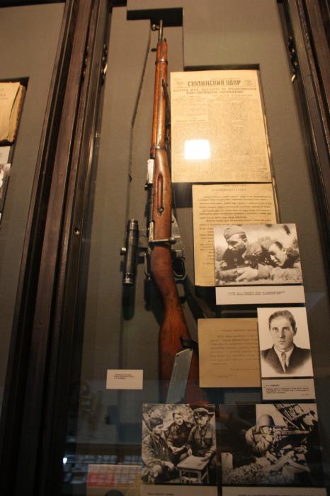 Наиболее известные реликвийные экспонаты музея: почетный меч – дар короля Георга VI гражданам Сталинграда, врученный И. В. Сталину на Тегеранской конференции в 1943 г.; шинель генерала В. А. Глазкова со 168 пулевыми и осколочными пробоинами; китель Маршала Г. К. Жукова; стол из штаба генерала М. С. Шумилова, где впервые допрашивали немецкого генерал-фельдмаршала Ф. Паулюса, плененного в Сталинграде в 1943 г.; 76-мм пушка «ЗИС-3», прошедшая с боями от Сталинграда до Берлина и др.