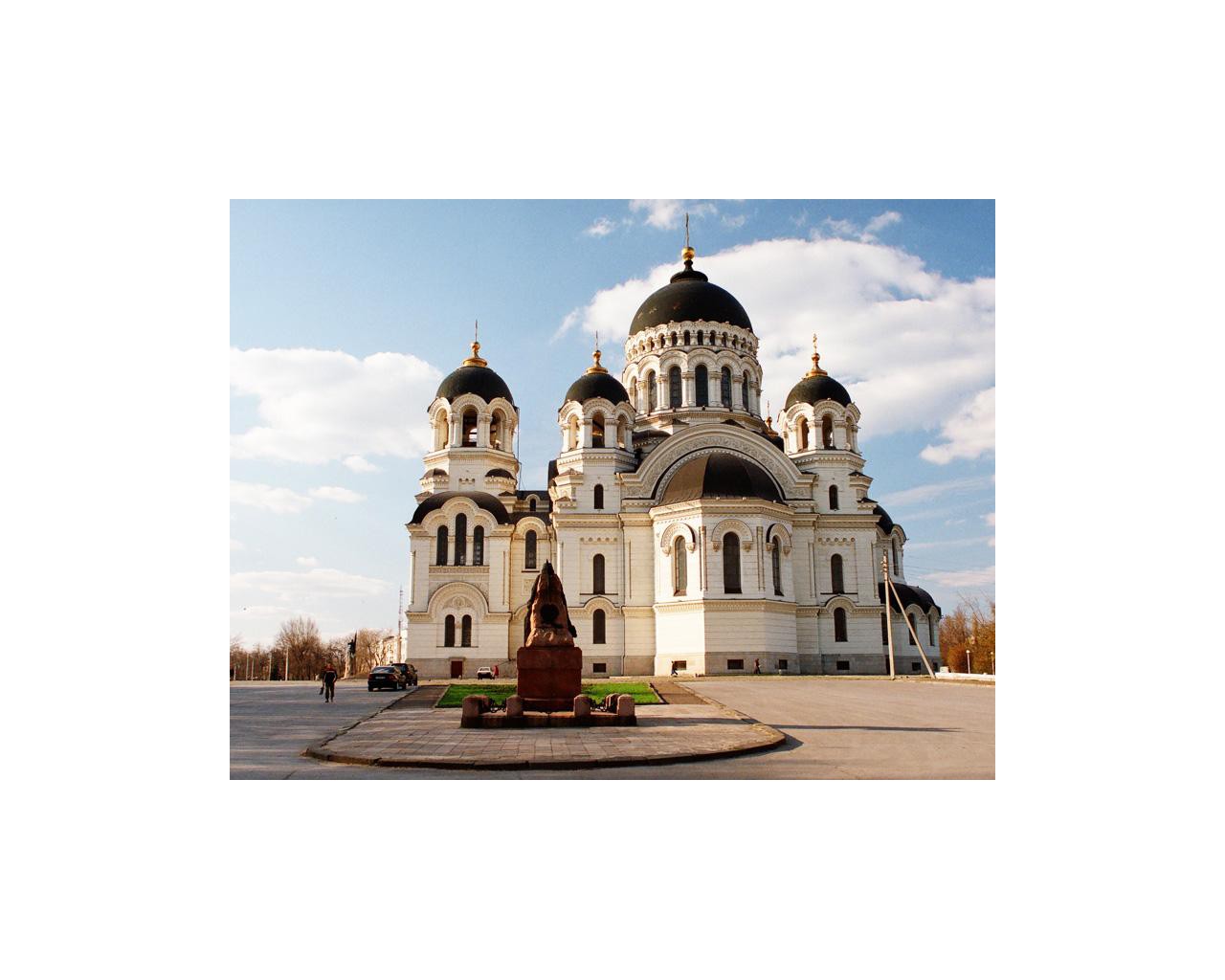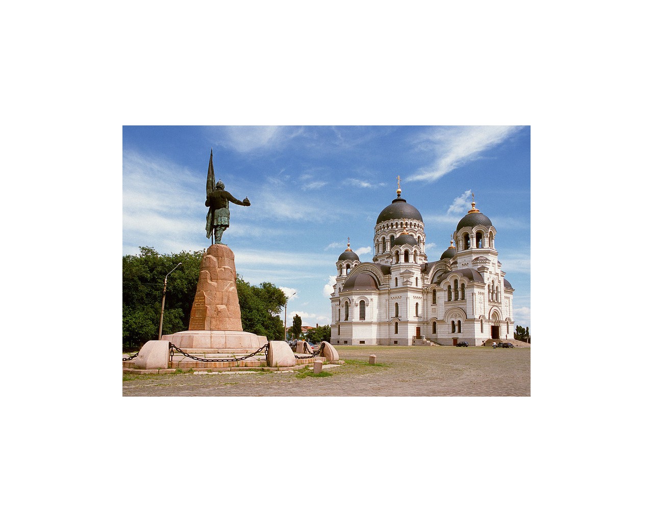 Новочеркасский войсковой Вознесенский кафедральный шестиглавый собор построен в ново-византийском стиле. Выполнен из кирпича.