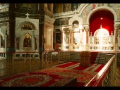 На хоры ведет чугунная лестница, имеющая 9 маршей из 62 ступеней и 9 площадок. А на колокольню - лестница из 4-х маршей с 48 ступенями и 5 площадками, а затем винтовая лестница с 56 ступенями. Всего же на колокольню ведет до 200 ступеней. Великолепная стенная роспись храма сохранилась частично.