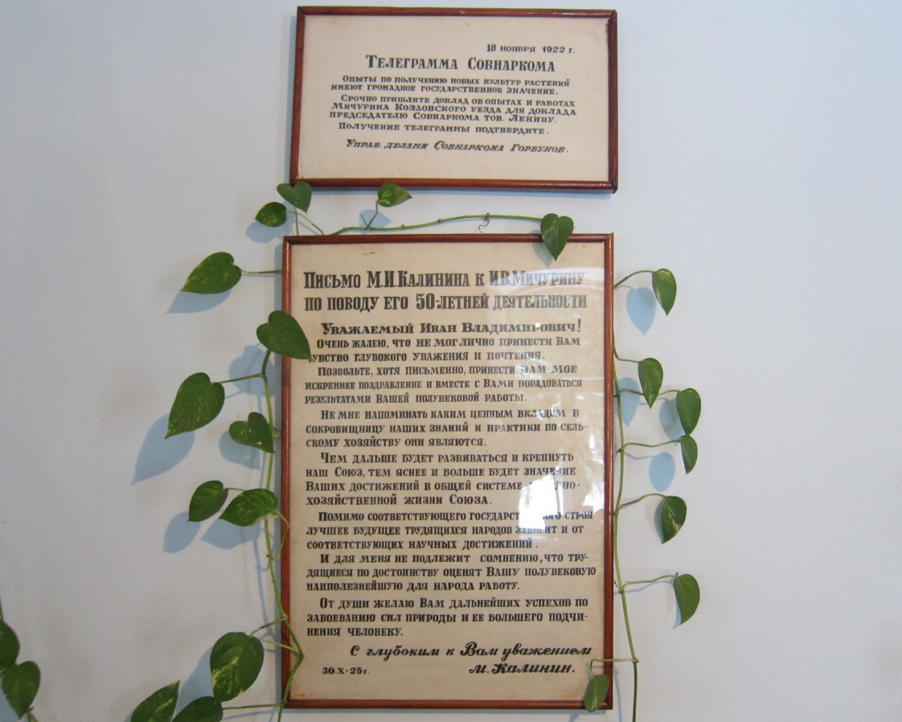 В доме все так, как было при Мичурине: мебель, фотографии, книги, инструменты. Часы. Иван Владимирович разбирался в механизмах, любил их ремонтировать. Сегодня все часы в музее показывают одно и то же время – девять часов тридцать минут, а на стенном календаре вот уже много лет не меняется дата: 7 июня 1935 года (дата и время смерти Мичурина).