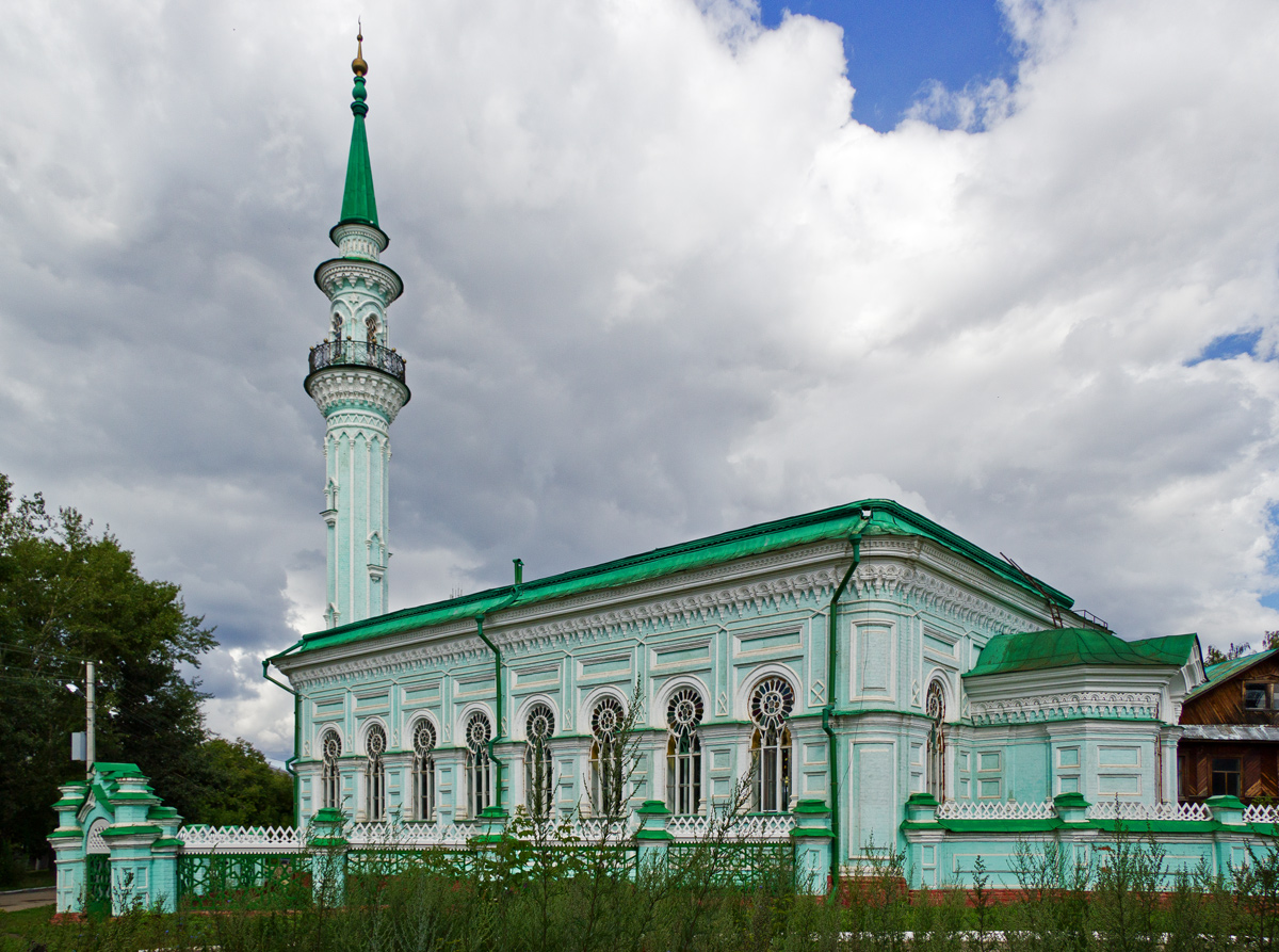 Словно сошедшая со страниц волшебной сказки, вырастает посреди улицы Фаткуллина Азимовская мечеть. Она представляет собой прямоугольное с закругленными углами здание, с высоким, в 51 метр, и весьма тонким и стройным, диаметром в 3 метра, трехъярусным минаретом. Архитектурное решение мечети выполнено в стиле эклектики национально-романтического направления. В украшении фасадов преобладают восточно-мусульманские мотивы.