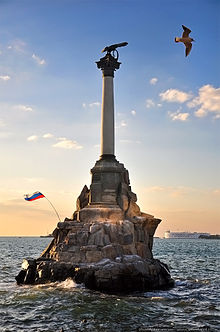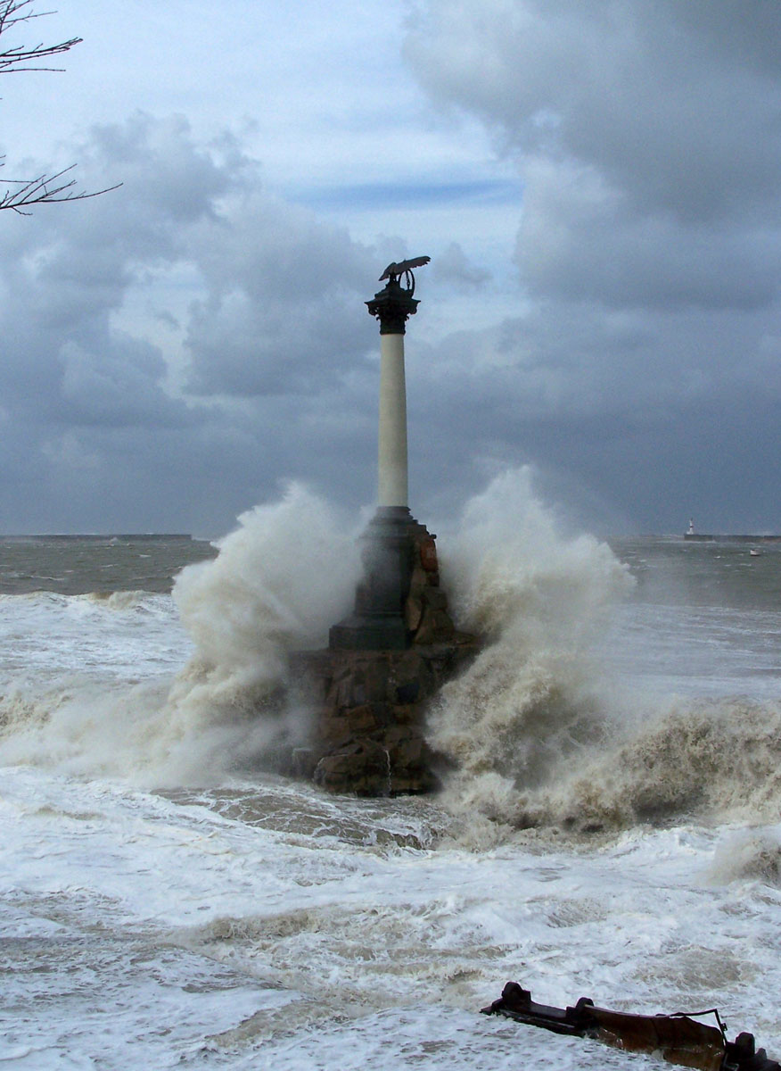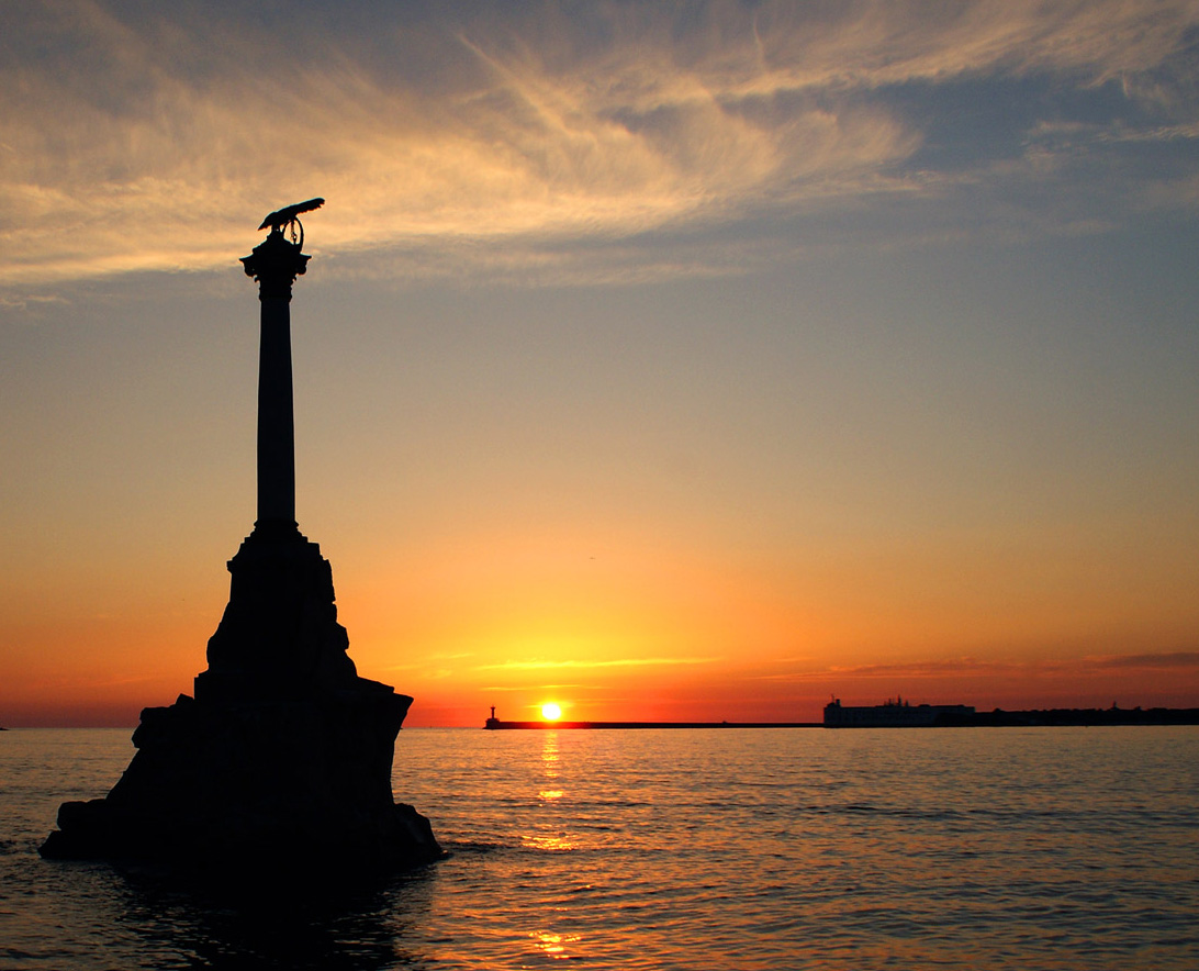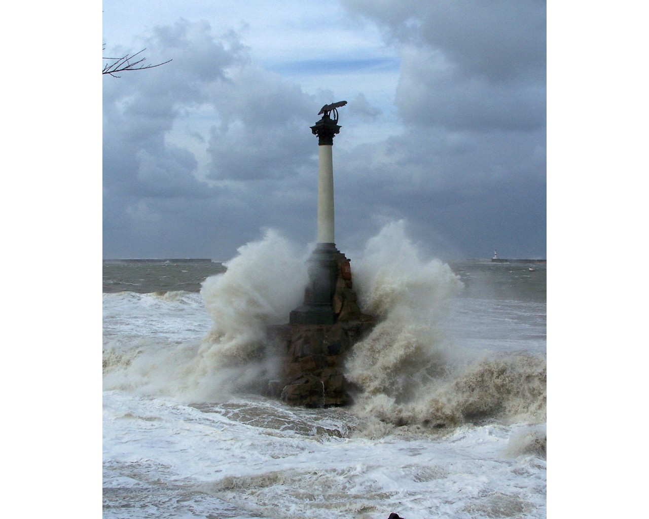 К главному символу Севастополя (он даже попал на городской герб) не подступиться – памятник возвышается прямо в море перед набережной. С берега не каждый разглядит надпись у основания, а она гласит: ««Въ память кораблей, затопленных въ 1854 и 1855 г.г. для загражденiя входа на рейдъ». Около десятка парусников здесь затопили, чтоб закрыть бухту для англо-французского флота, подступившего к городу во время так называемой «Первой обороны Севастополя» (вторая случилась уже в Великую Отечественную). Стоящий на утесе памятник – колонна с двуглавым орлом наверху – особенно красив он в шторм, когда волны с грохотом и брызгами колотятся об него.