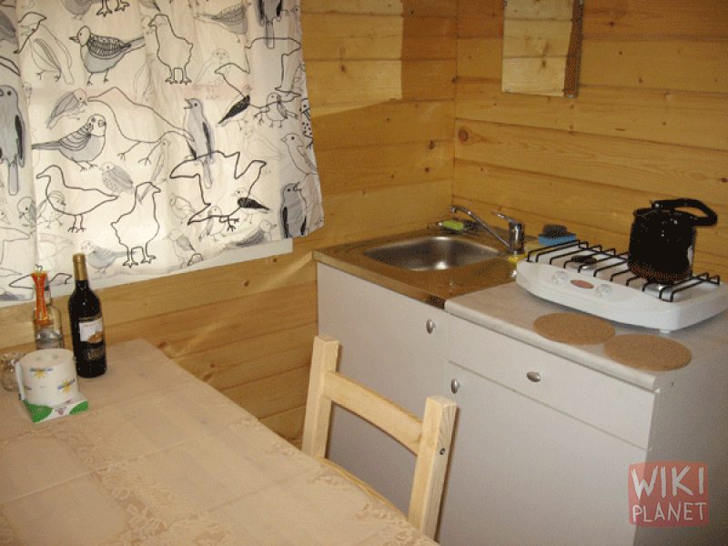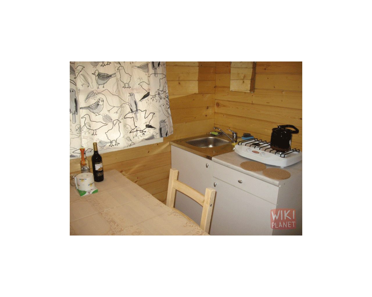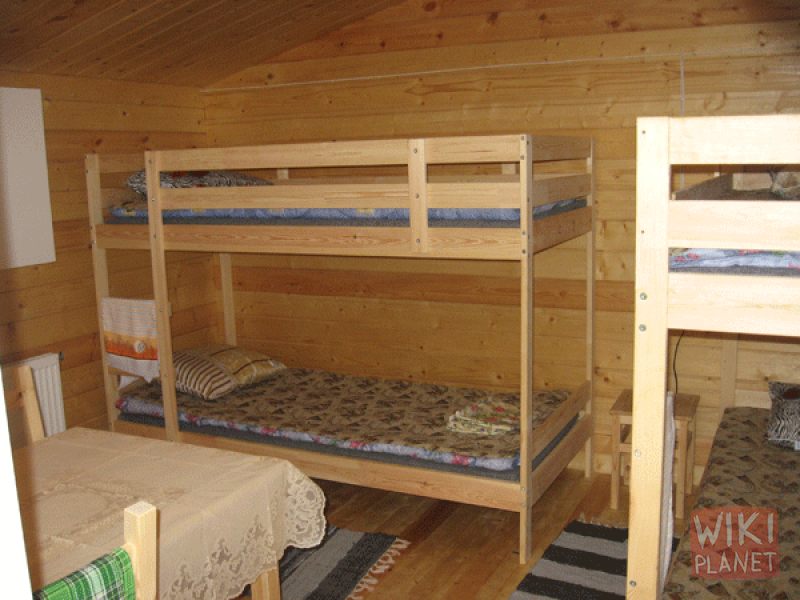 На базе отдыха готовы к приему туристов 8 домиков вместимостью от 2 до 4 человек. В каждом домике туристов ждут 2 двухъярусные кровати, постельное белье, посуда, газовая плита, маленький холодильник. В домике есть мойка с холодной водой. Туалет уличный, общий. В отдельном домике находится общий душ. На берегу находится причал с лодками, гребными и моторными.