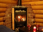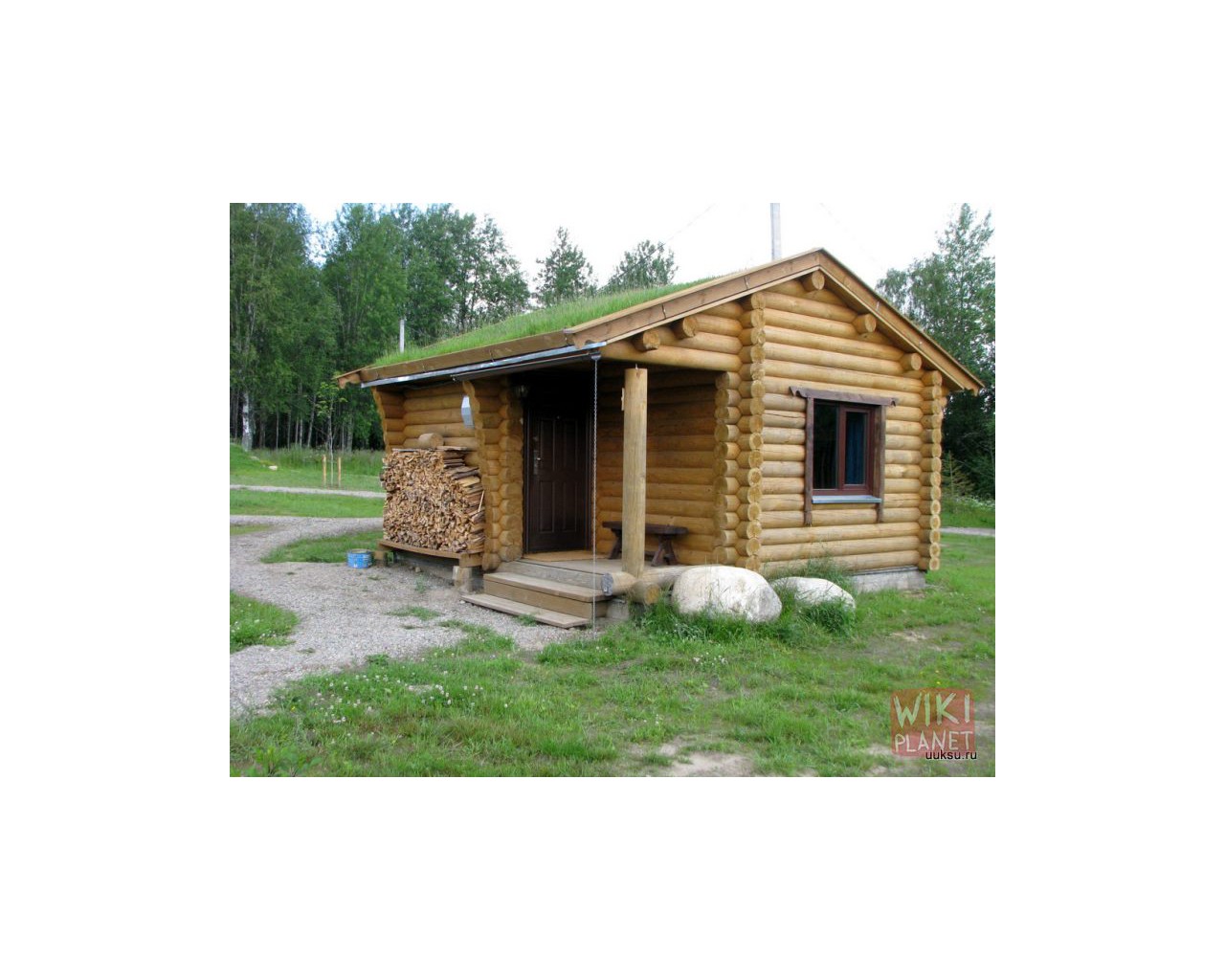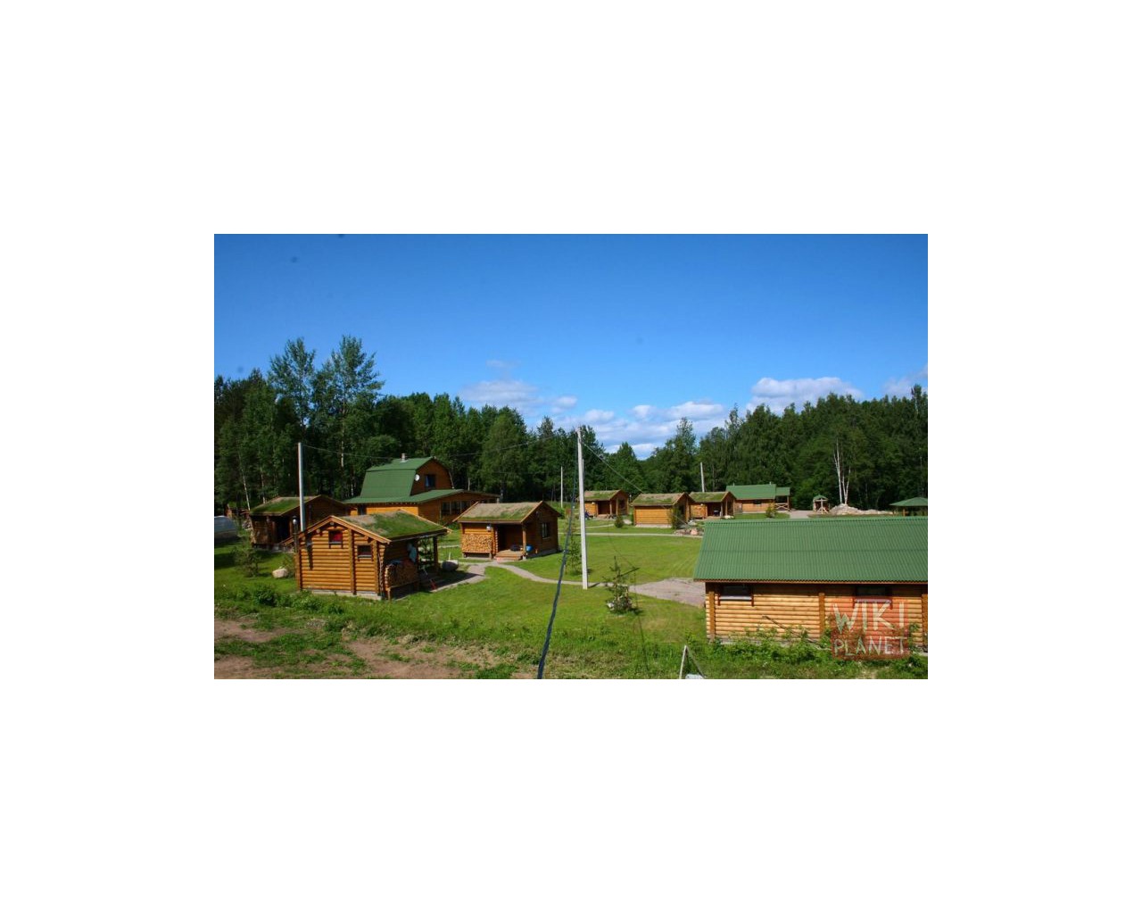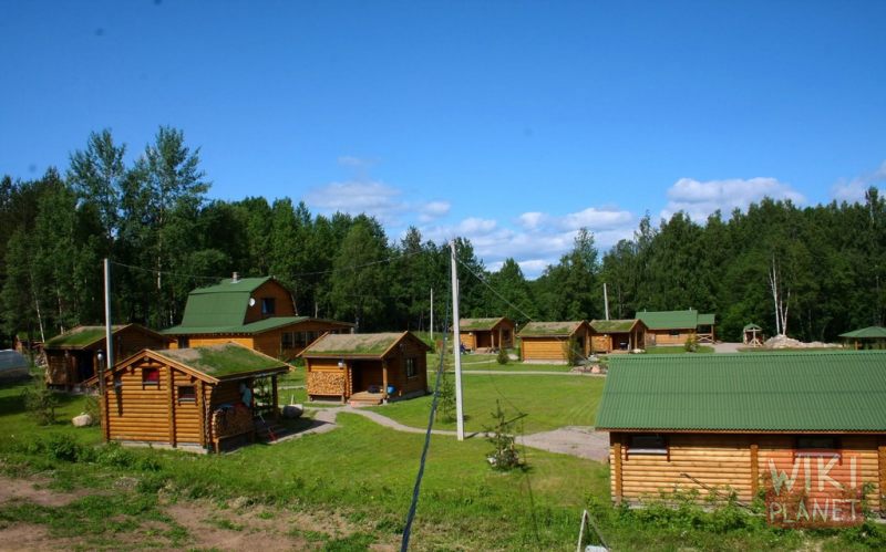 В деревне указатель ТУРБАЗА УУКСУ налево 200 метров.