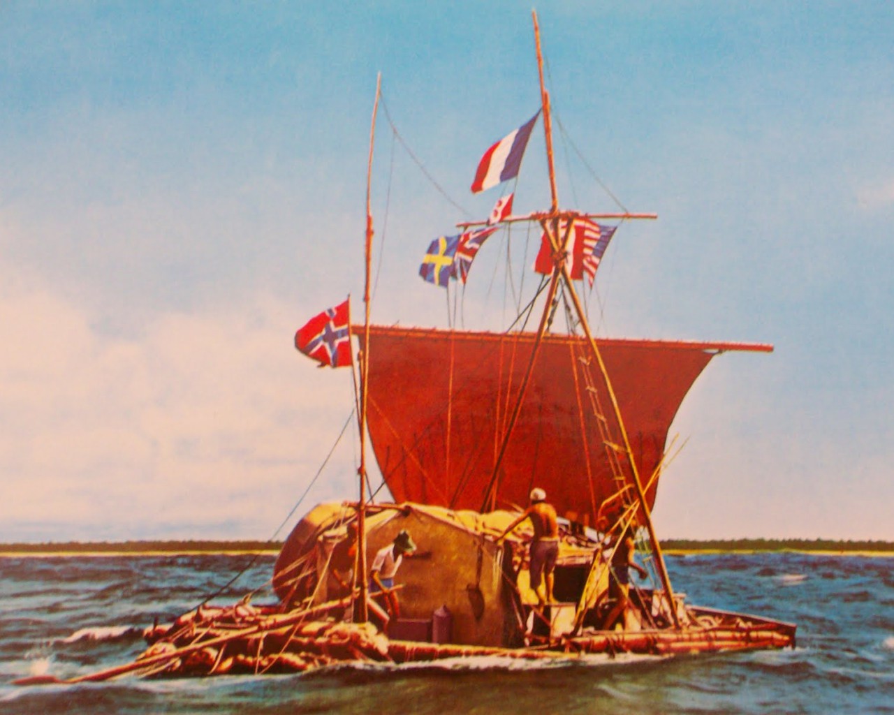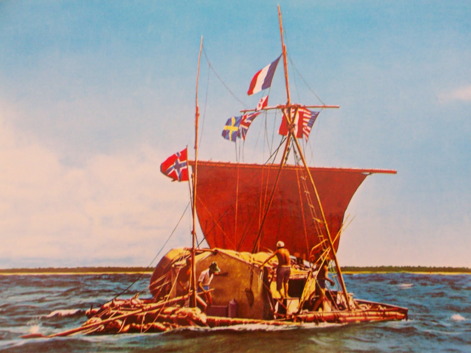 Центральный зал музея «Кон-Тики», разумеется, посвящён невероятному плаванью. В центре зала размещён искусно подсвеченный плот в частично оригинальном, частично восстановленном виде, а по периметру представлены многочисленные материалы об экспедиции — карты, предметы быта на судне, фотографии, воспоминания участников.