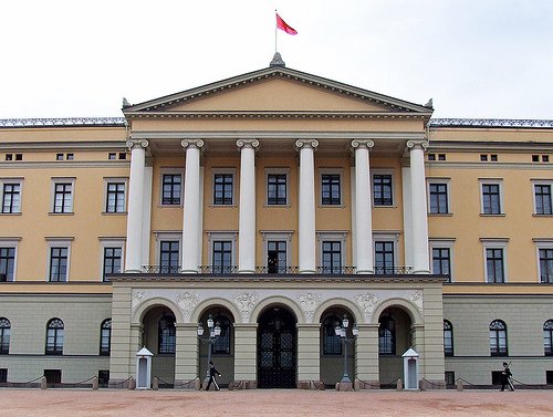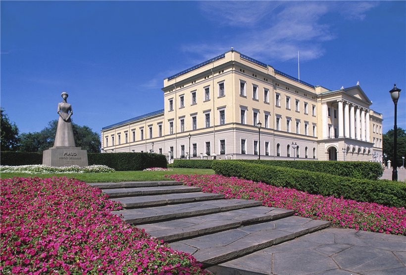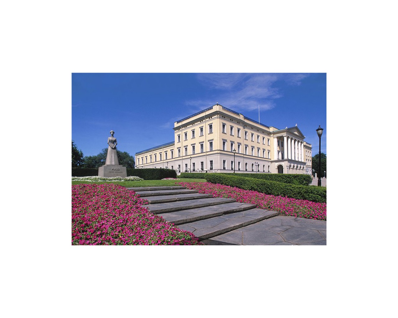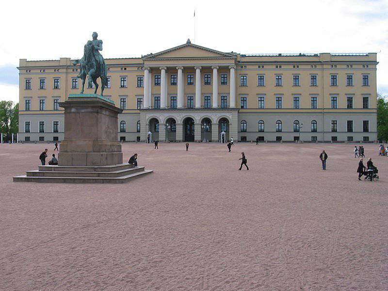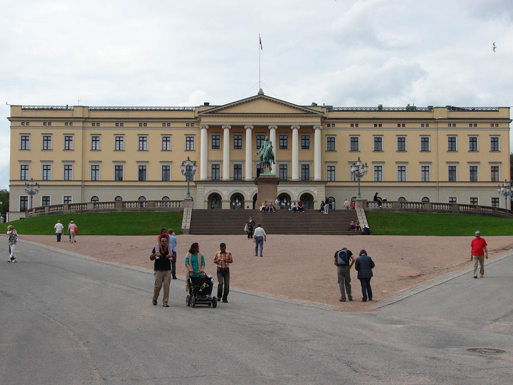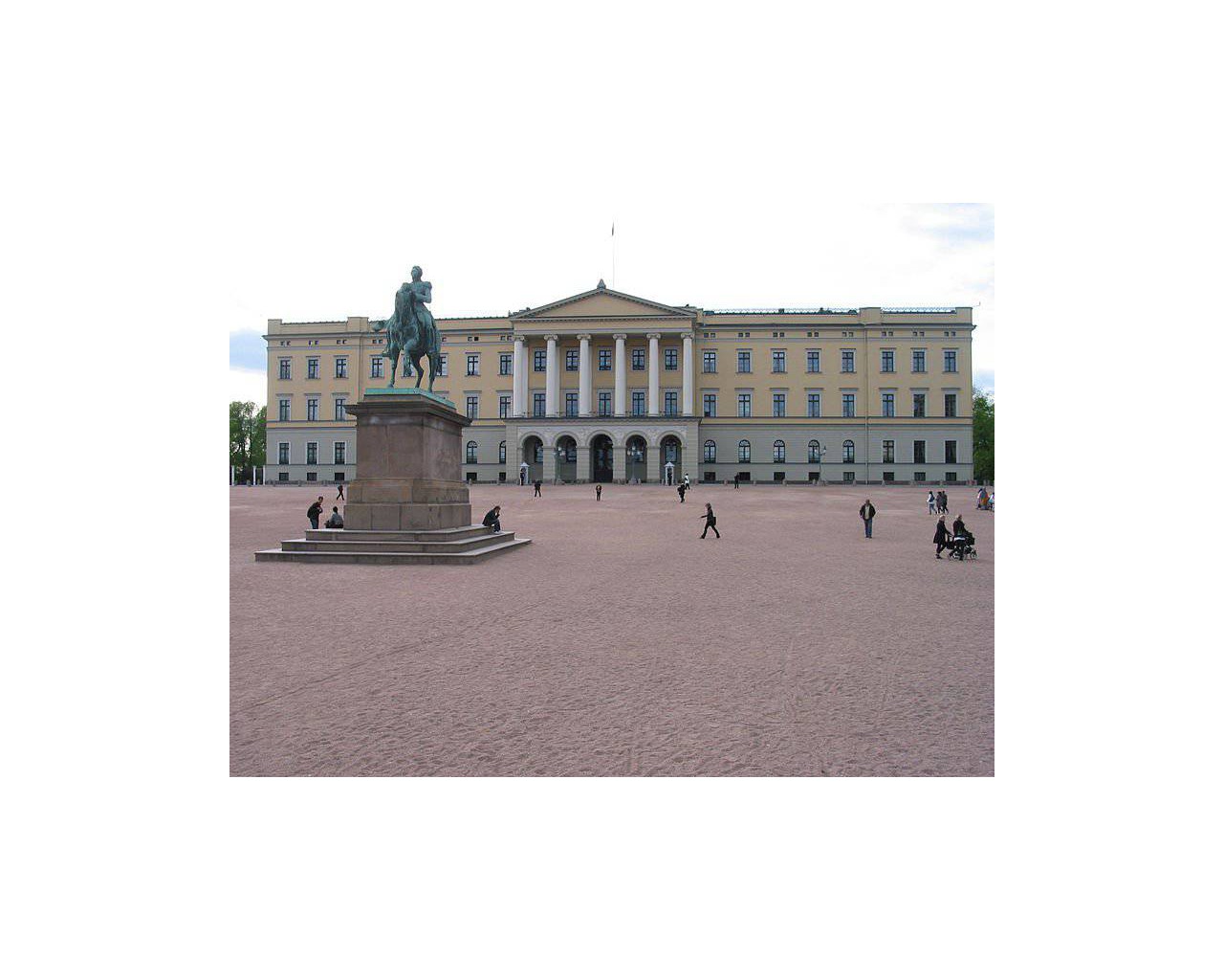 Королевский дворец в Осло – действующая резиденция короля Норвегии. Построен в 1825-1849 году королем Карлом XIV Юханом, который собственноручно заложил камень в основание постройки, но так и не дожил до конца строительства. Сейчас перед дворцом возвышается бронзовая конная статуя этого монарха. Проектирование Королевского дворца в Осло было поручено архитектору Г.Д. Линстову. Он создал сравнительно небольшое и скромное здание, почти лишенное декора. Единственным украшением дворца являются колонны. Туристы могут свободно осматривать дворец и гулять по прилегающей к нему зеленой зоне, летом проводятся экскурсии по дворцу.