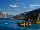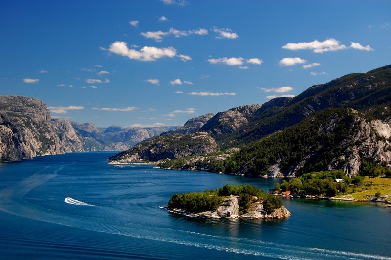 Добираться до Люсе-фьорда с севера или востока — одно удовольствие. Ведь именно там находится живописная дорога Рюфюлькевеген, которая идет между шоссе rv13 и rv520, простираясь от паромного причала в Оанесе на юге до Рёлдала на севере.