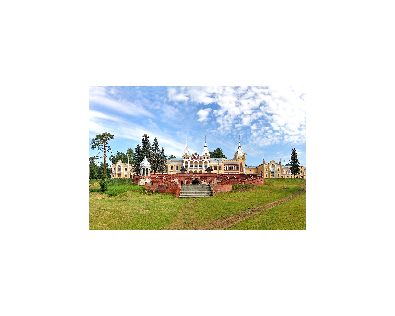 Поместье фон Дервиза (Сергея Павловича), сына известного мецената и строителя железных дорог в Российской империи, - одно из самых красивых в Рязанской области. Говорят, из-за размаха строительства и "малиновщины" хозяина, тот в конце концов разорился, а вот архитектор (некто Шехтель), наоборот, прославился. В сказочном дворце фон Дервиза организован детский санаторий. Но окрестности по-прежнему доступны для стихийных путешественников - никакой колючей проволоки и заставы со сторожевыми собаками.