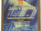 В г. Кировске действует муниципальная программа «Развитие туризма в муниципальном образовании город Кировск с подведомственной территорией на 2012 – 2016 годы», утвержденная постановлением администрации города Кировска, на ее основании отдел «Туристско-информационный центр» ведет свою работу.