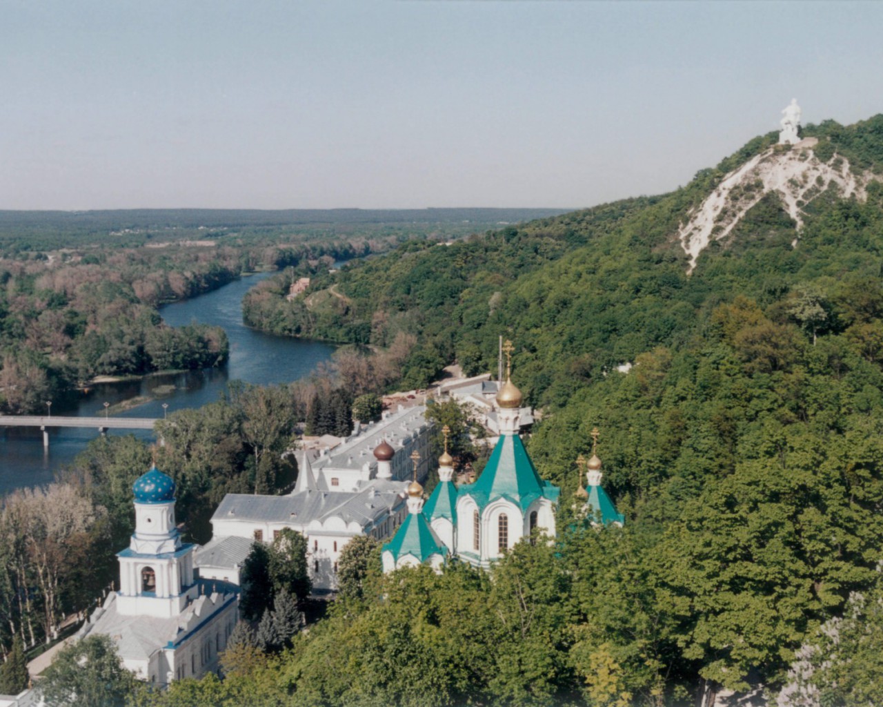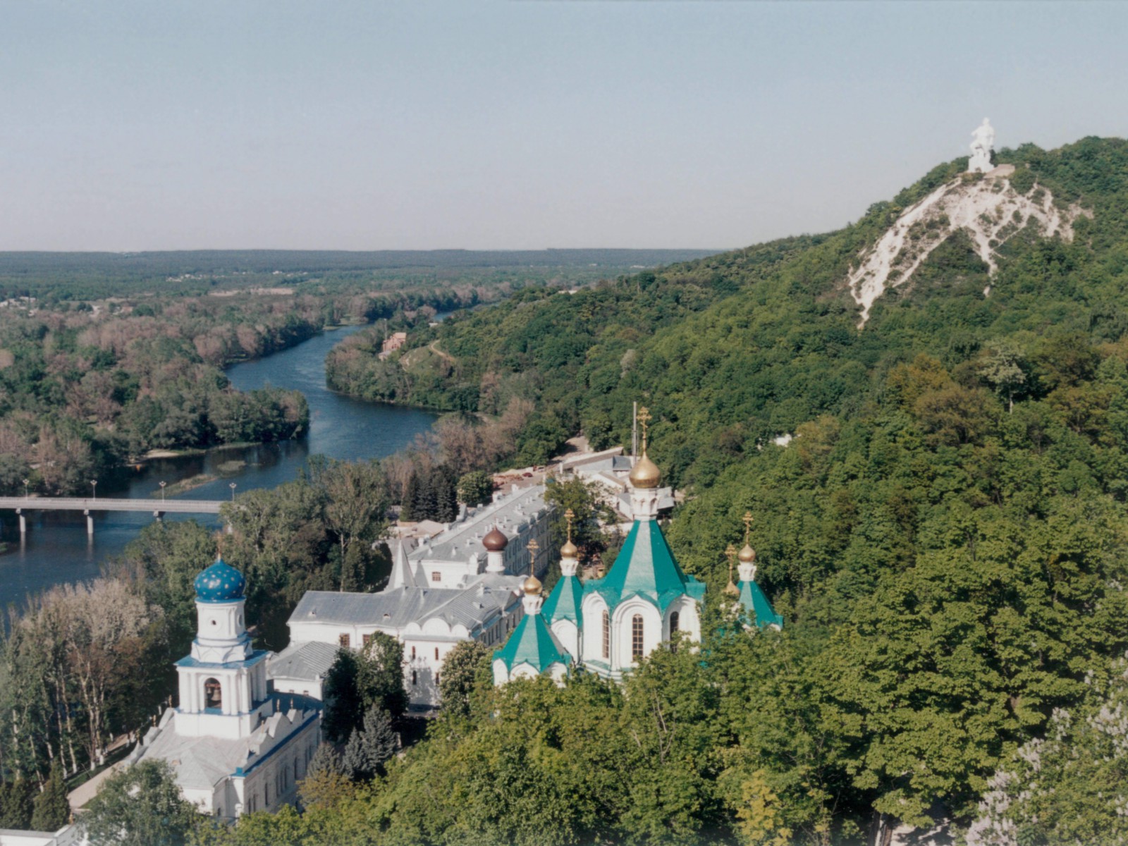 Монастырь на правом высоком меловом берегу Северского Донца, на так называемых «Святых горах». Кроме наземных строений, имеются меловые пещеры.