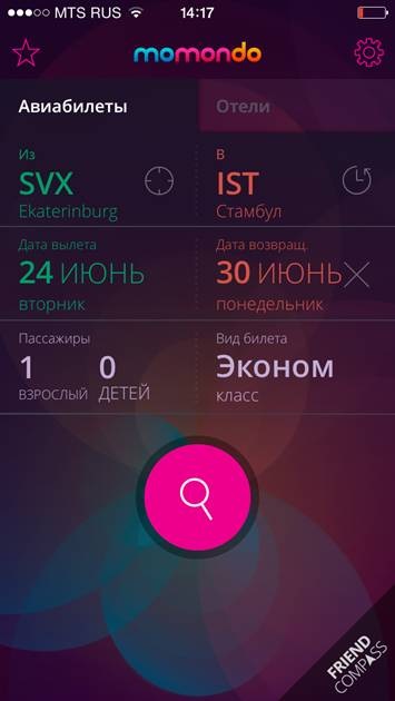 Мобильное приложение по поиску авиабилетов от momondo с инновационной опцией Friend Compass