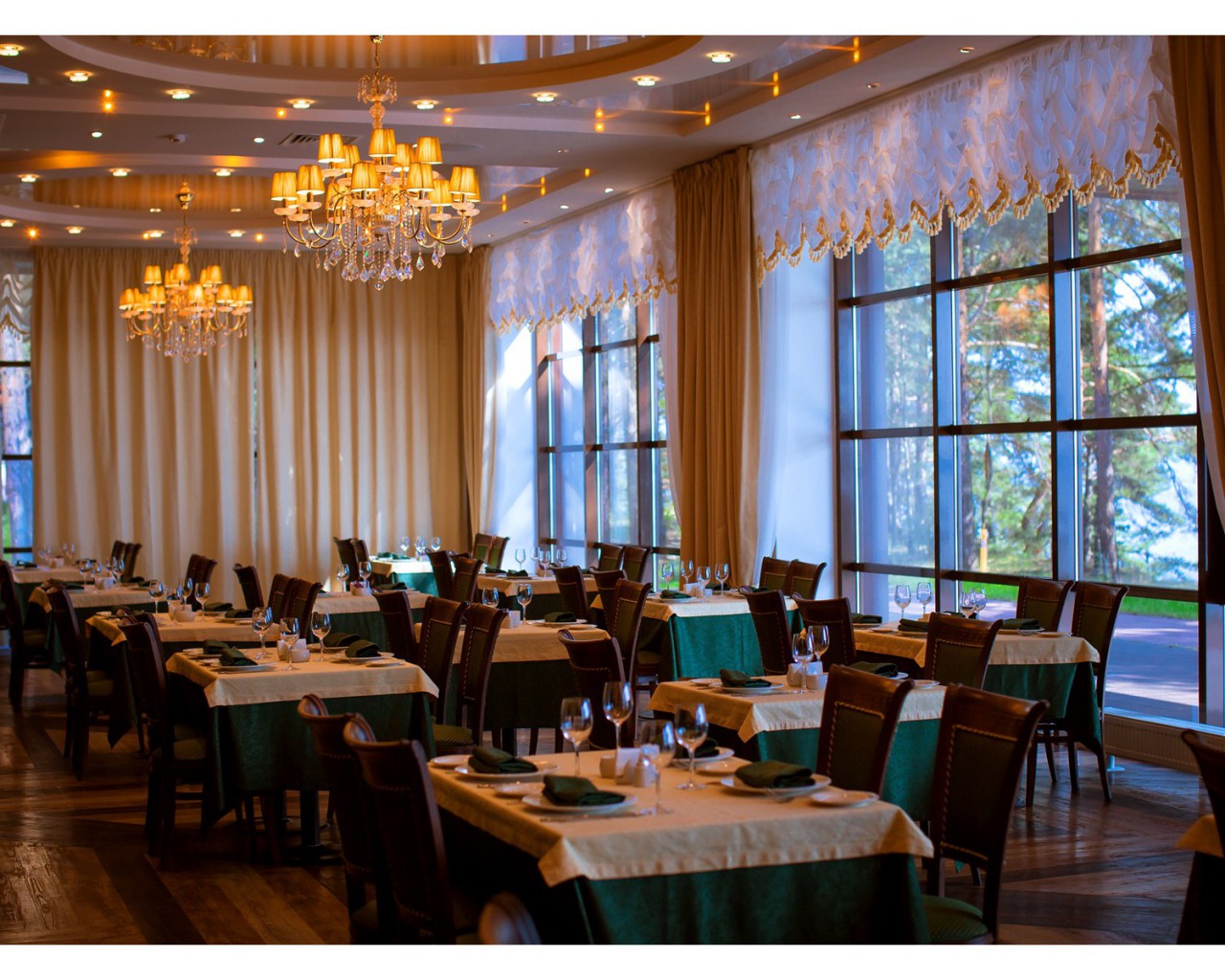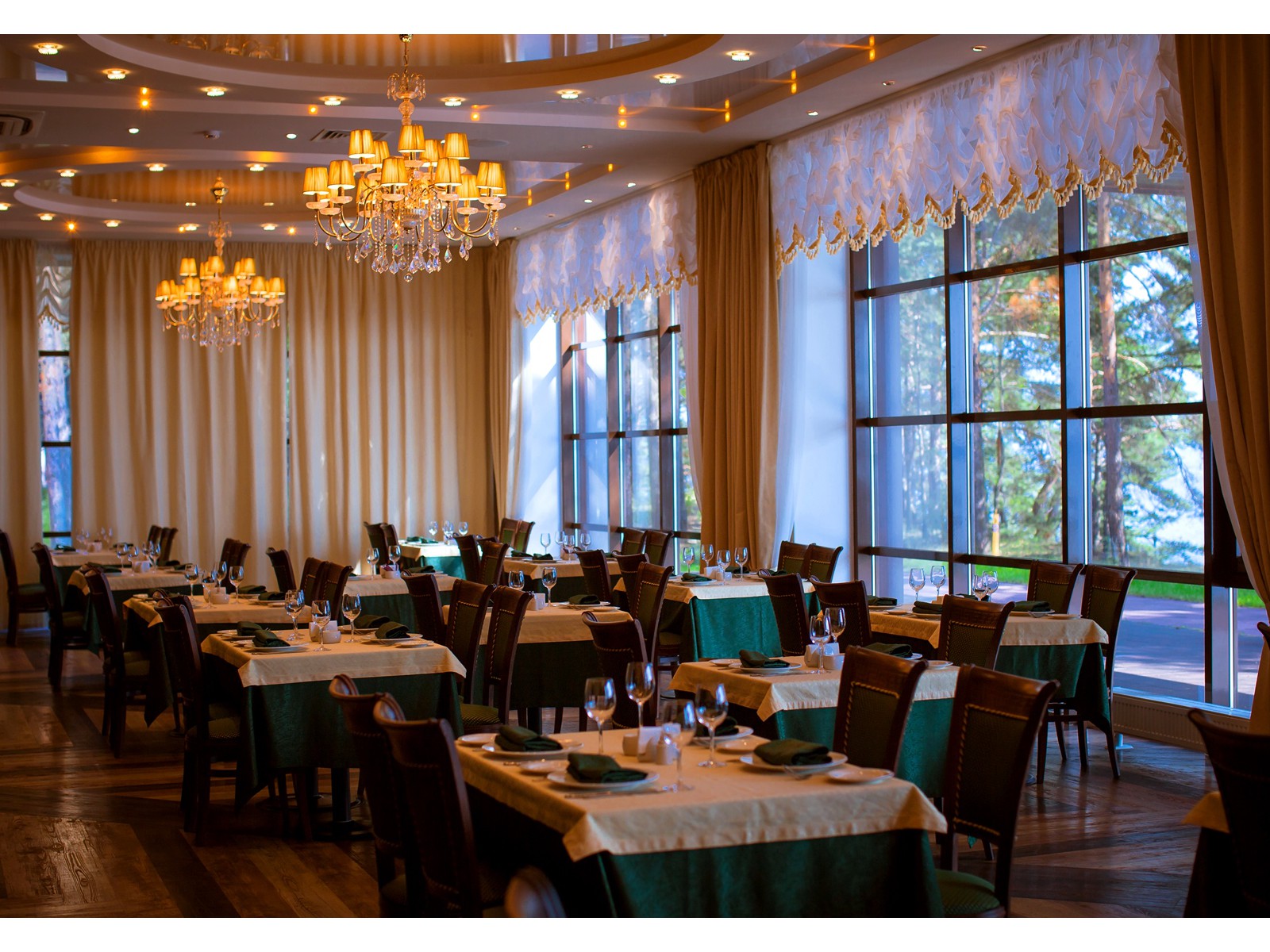 Курорт "Ярославское взморье" удовлетворит гастрономические потребности самых взыскательных клиентов. В меню представлены блюда различных стран мира, традиционная русская и европейская кухня, а также большой выбор изысканных вин. Есть детское меню. К услугам гостей - органические мясо-молочные продукты собственного производства и природные дары Копринской местности.