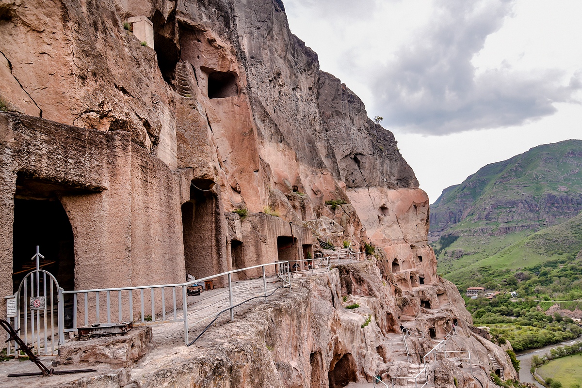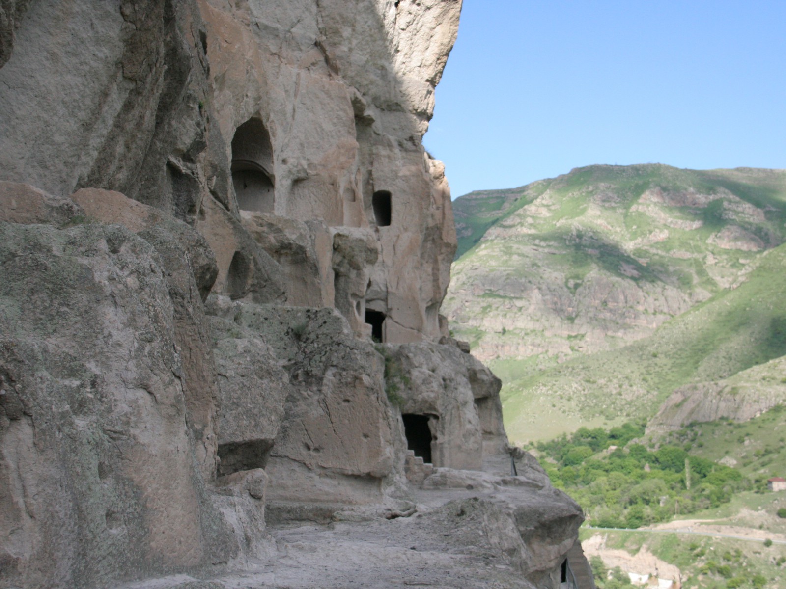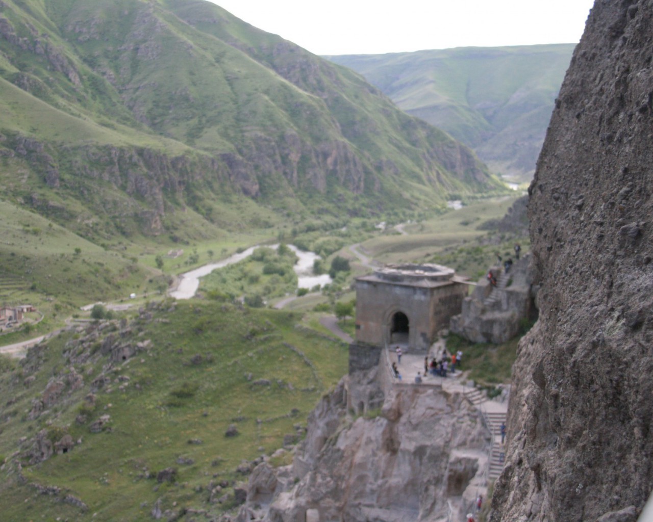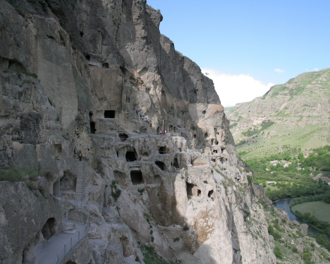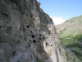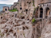 Вардзия – памятник средневекового грузинского зодчества. Протяженность комплекса – около 900 м, высота – примерно с 9-этажный дом, имеет 8 уровней и насчитывает 600 помещений, в их числе кельи, трапезные, храмы, кладовые, часовни и др.
