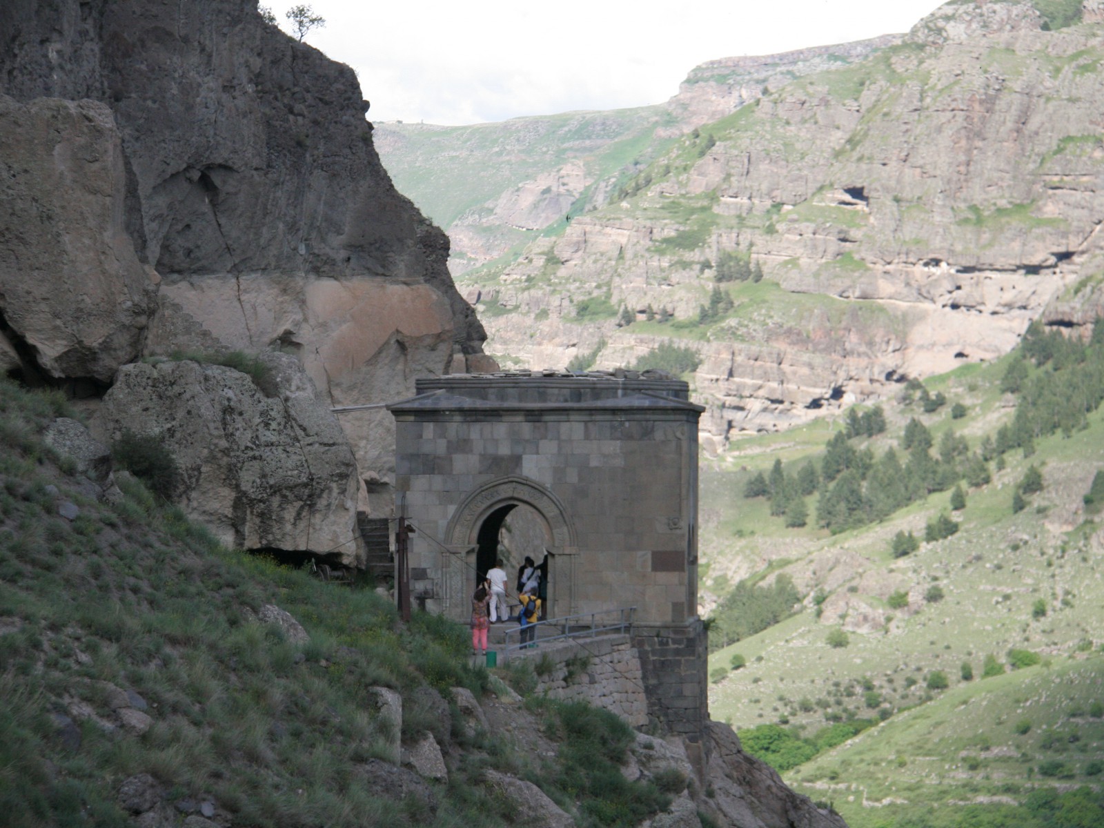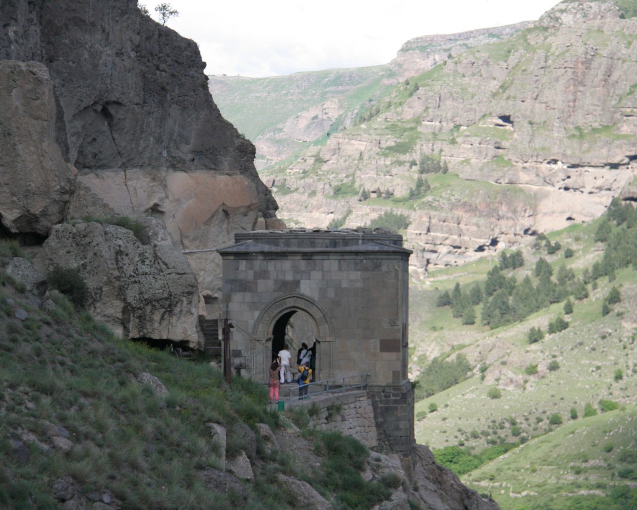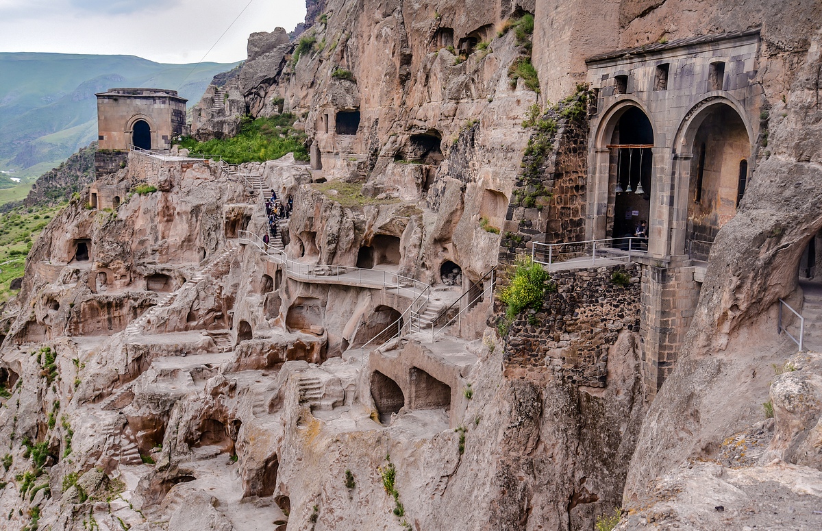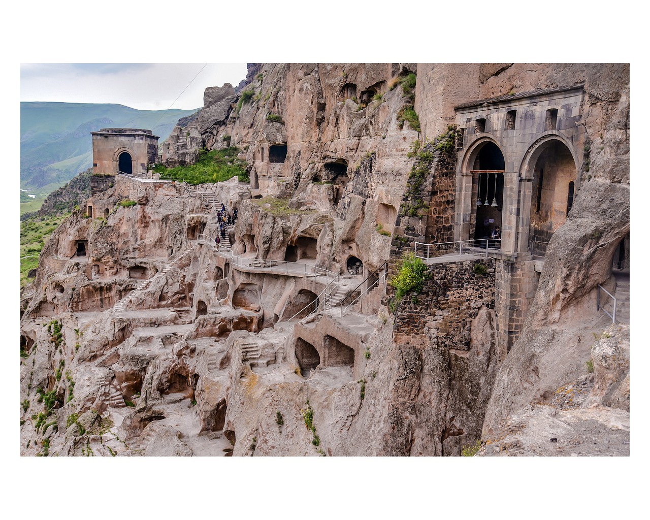 Вардзия – памятник средневекового грузинского зодчества. Протяженность комплекса – около 900 м, высота – примерно с 9-этажный дом, имеет 8 уровней и насчитывает 600 помещений, в их числе кельи, трапезные, храмы, кладовые, часовни и др.