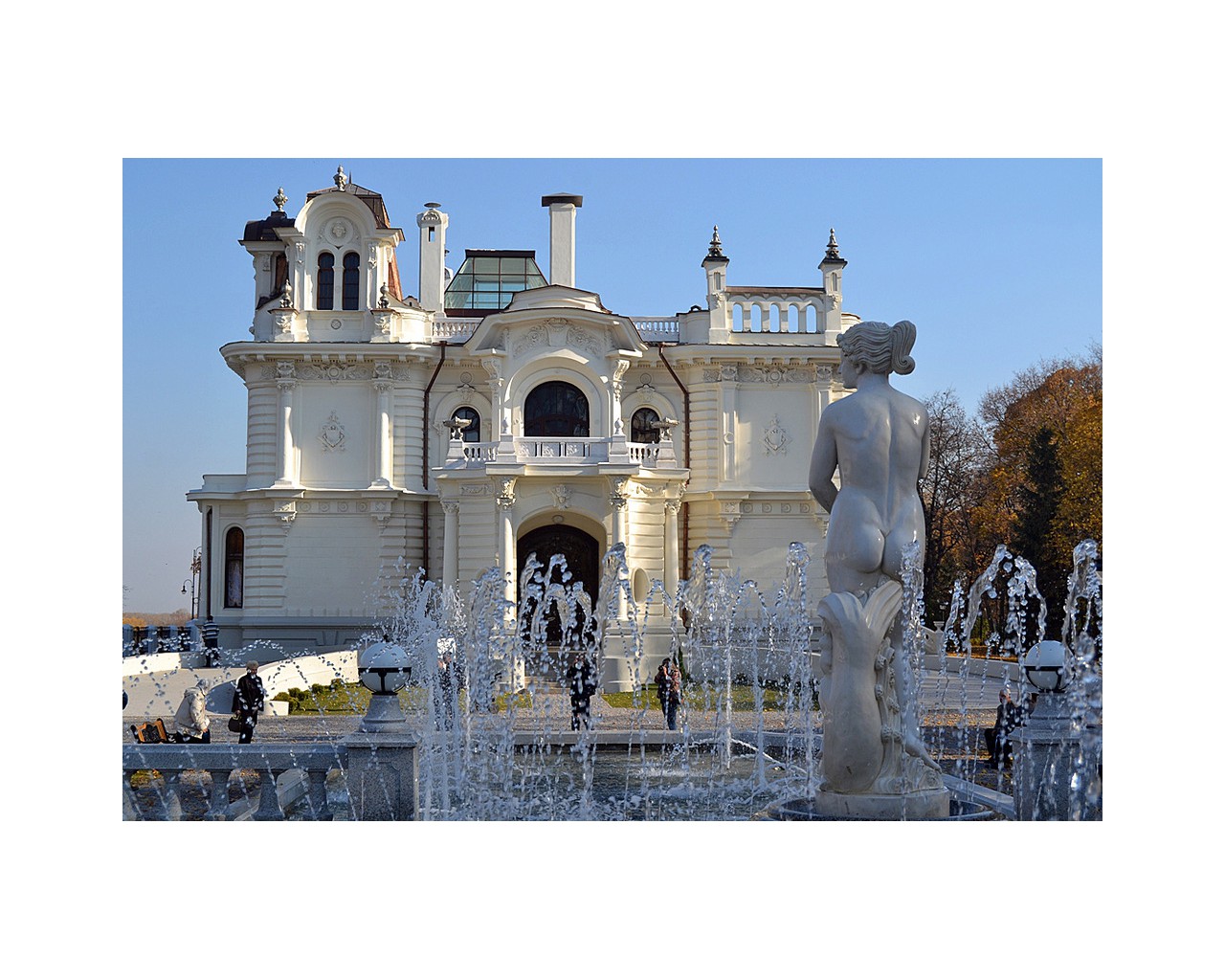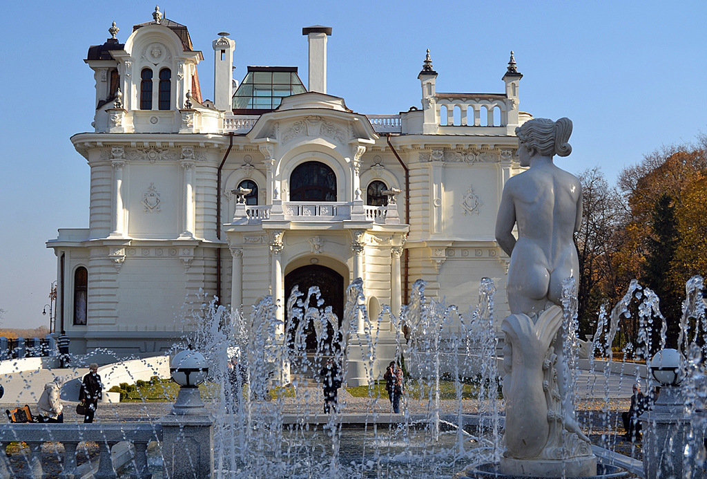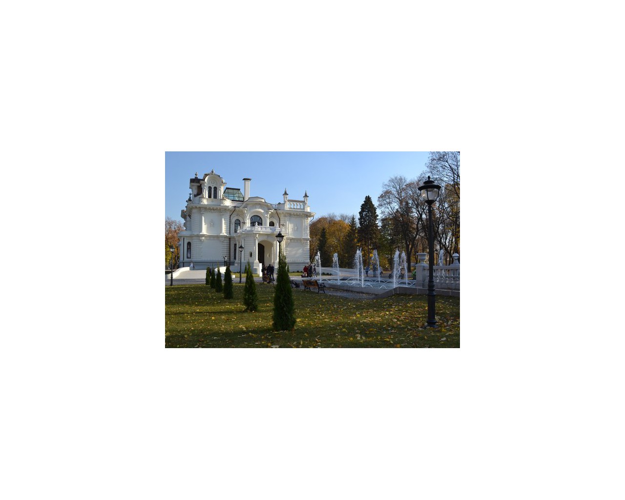 На территории усадьбы расположен прекрасный парк, жемчужиной которого является уникальный пятисотлетний черешчатый дуб. В парковой зоне проложены прогулочные тропинки, имеются беседки и скамьи для отдыха, сценическое пространство для концертных программ. Напротив главного входа в усадьбу внимание посетителей приковывает великолепный многофазовый фонтан с динамической подсветкой, увенчанный мраморной копией статуи Венеры Медицейской.