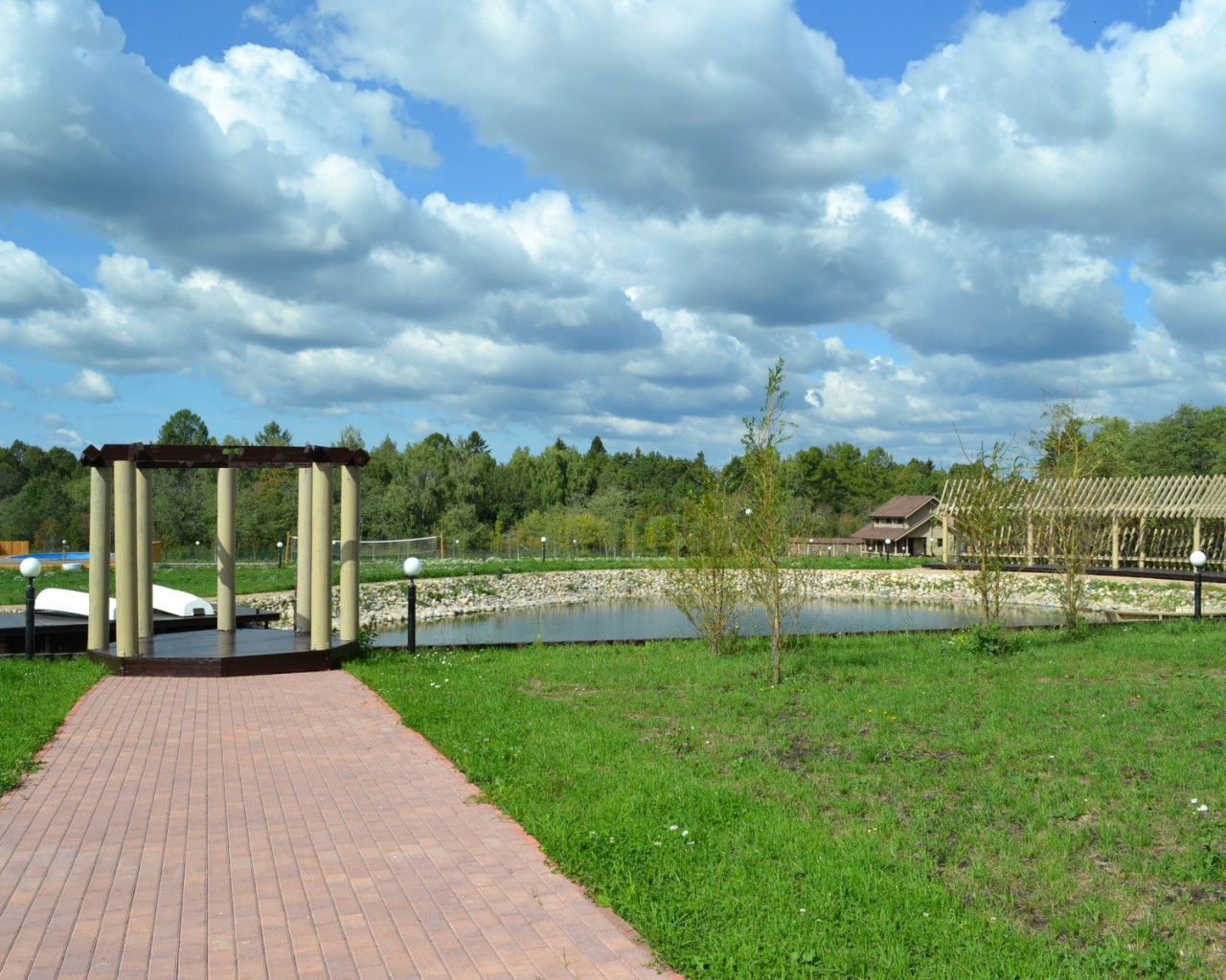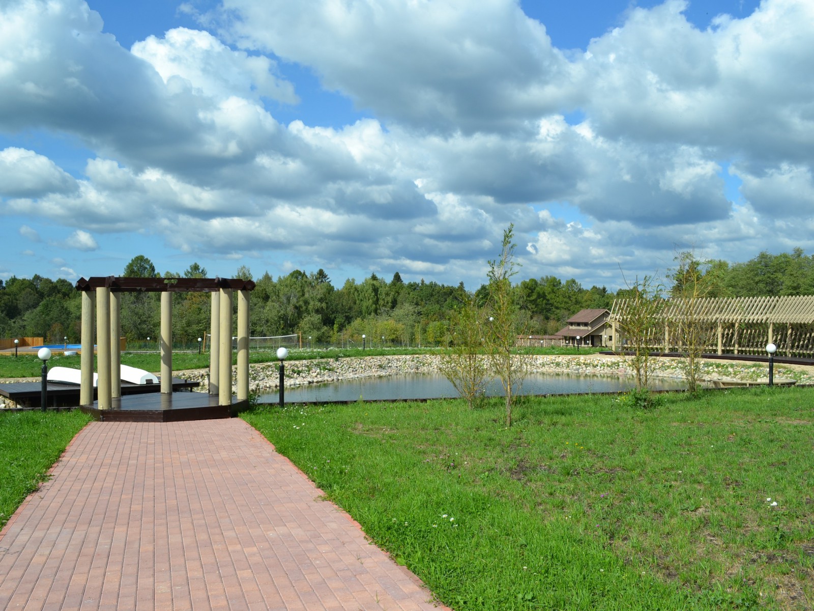 Развлечения: детская, рыболовная, костровая площадки, пейнтбол, футбольное поле, бассейн, пляж, снегоходы, банный комплекс, веревочный городок.