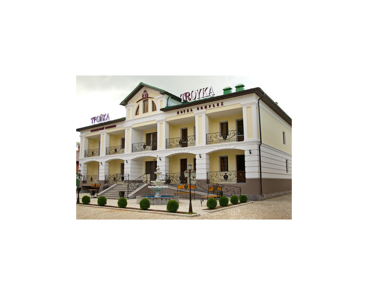 Гости могут питаться в ресторане отеля «Тройка», где предлагают блюда европейской и кавказской кухни. На территории отеля работает кафе и экскурсионное бюро. Гостям предлагаются услуги билетной кассы, а также услуги консьержа.