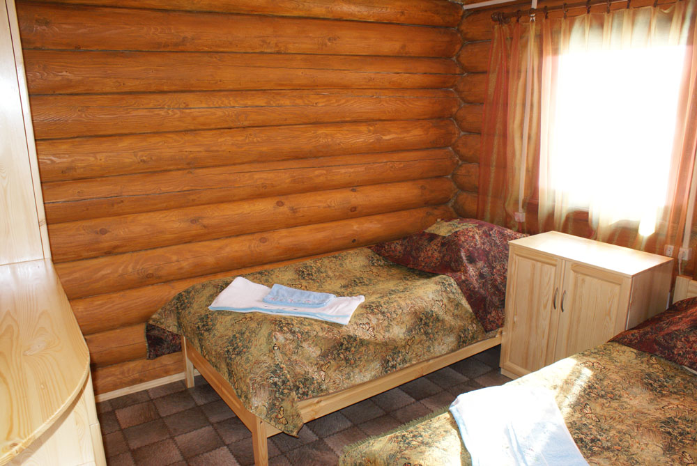 Мы предлагаем размещение в гостиничных номерах и отдельно стоящих рубленных домиках.