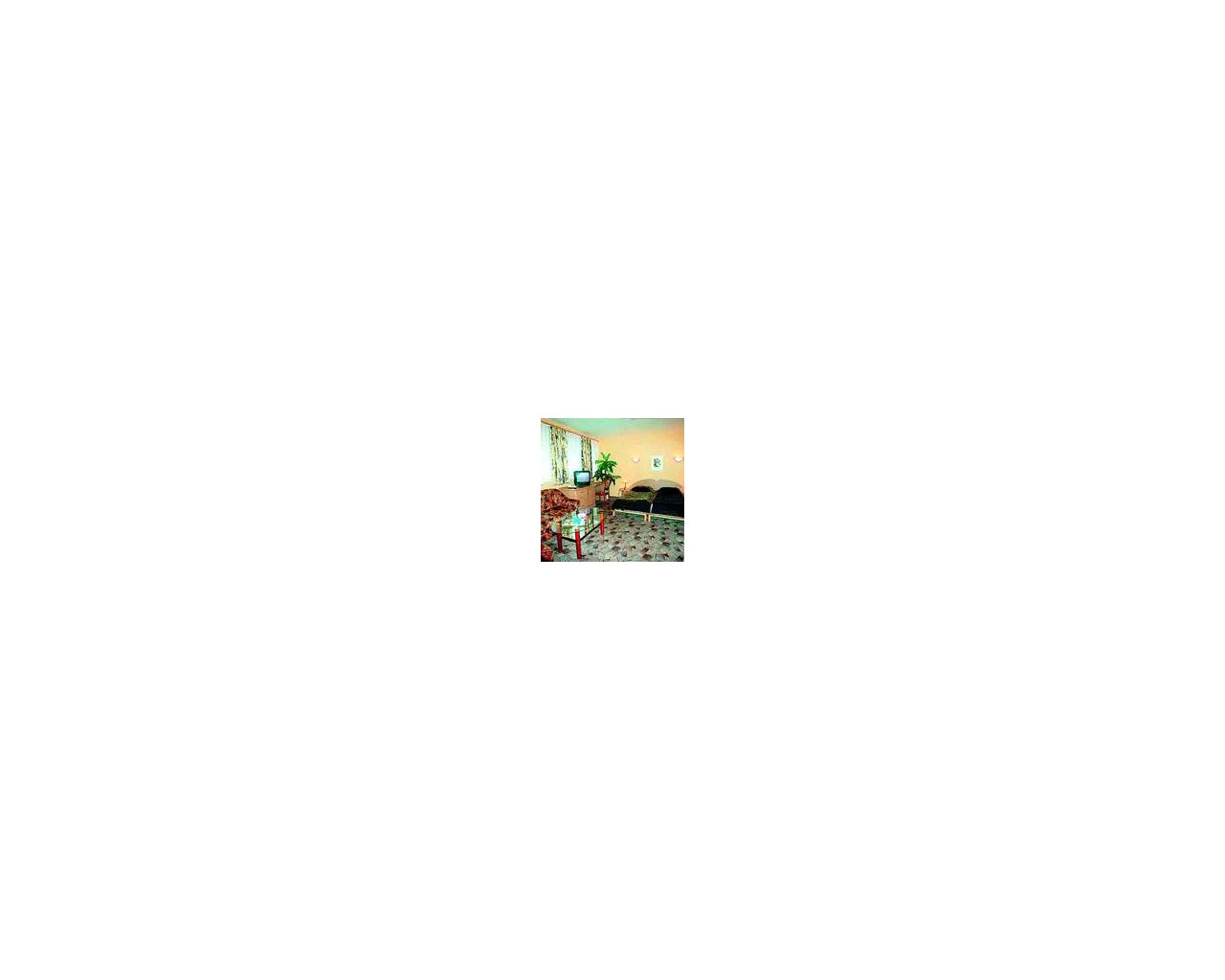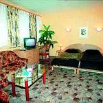 Люксы двухместные двухкомнатные: телевизор, телефон, холодильник, ванна, туалет.