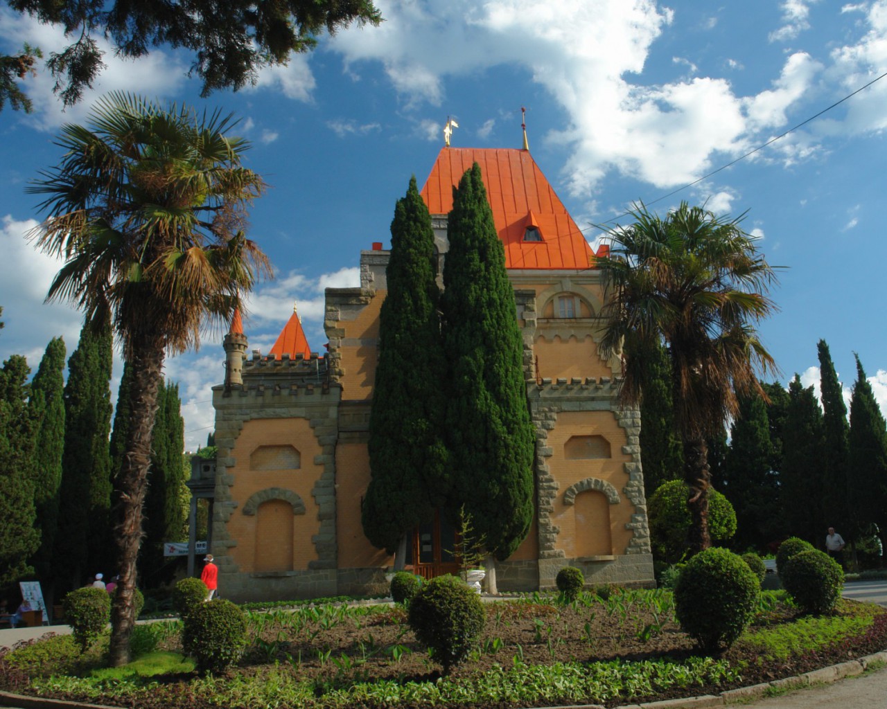 В настоящее время во дворце размещается административный корпус санатория «Утёс». Элементы романского стиля — башенки, узкие окна-бойницы — добавляют ему сходство со средневековым замком. Над главным входом находится родовой герб князей Гагариных с надписью на латыни: «В древности — сила». Наиболее выразительным является восточный фасад здания, обвитый виноградом.