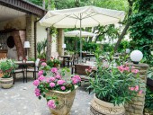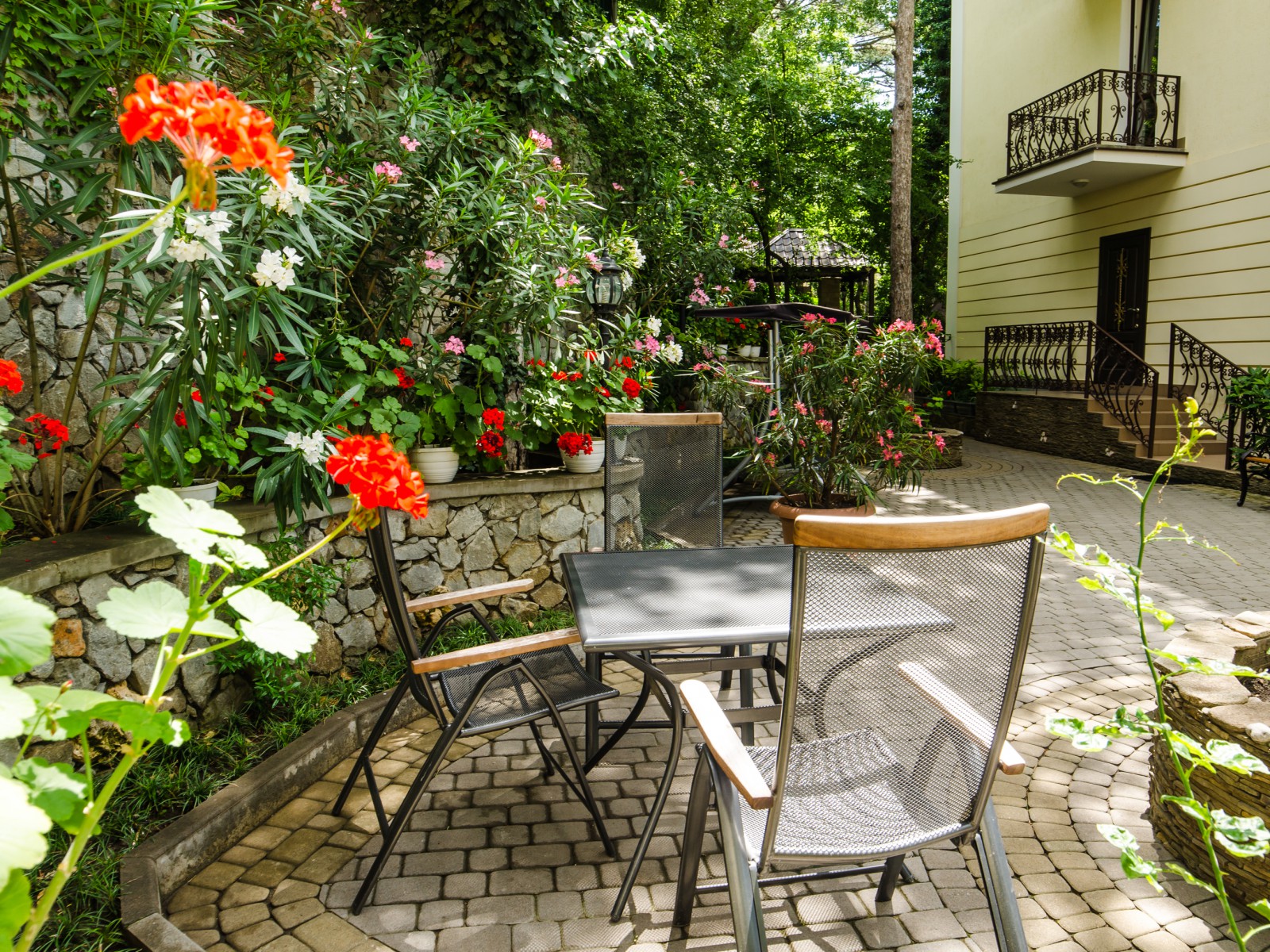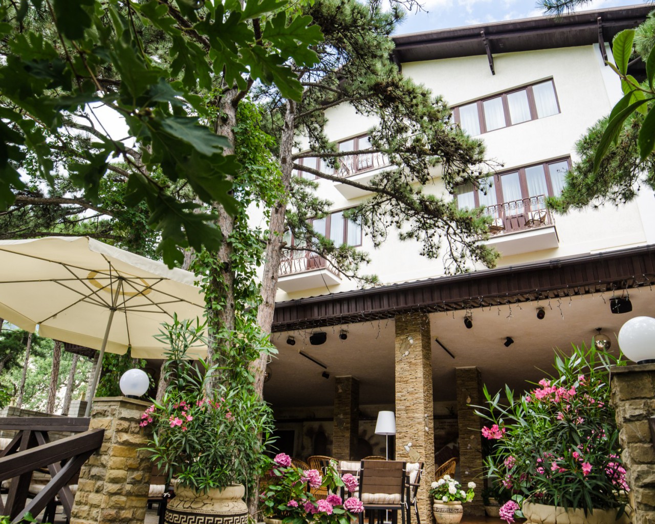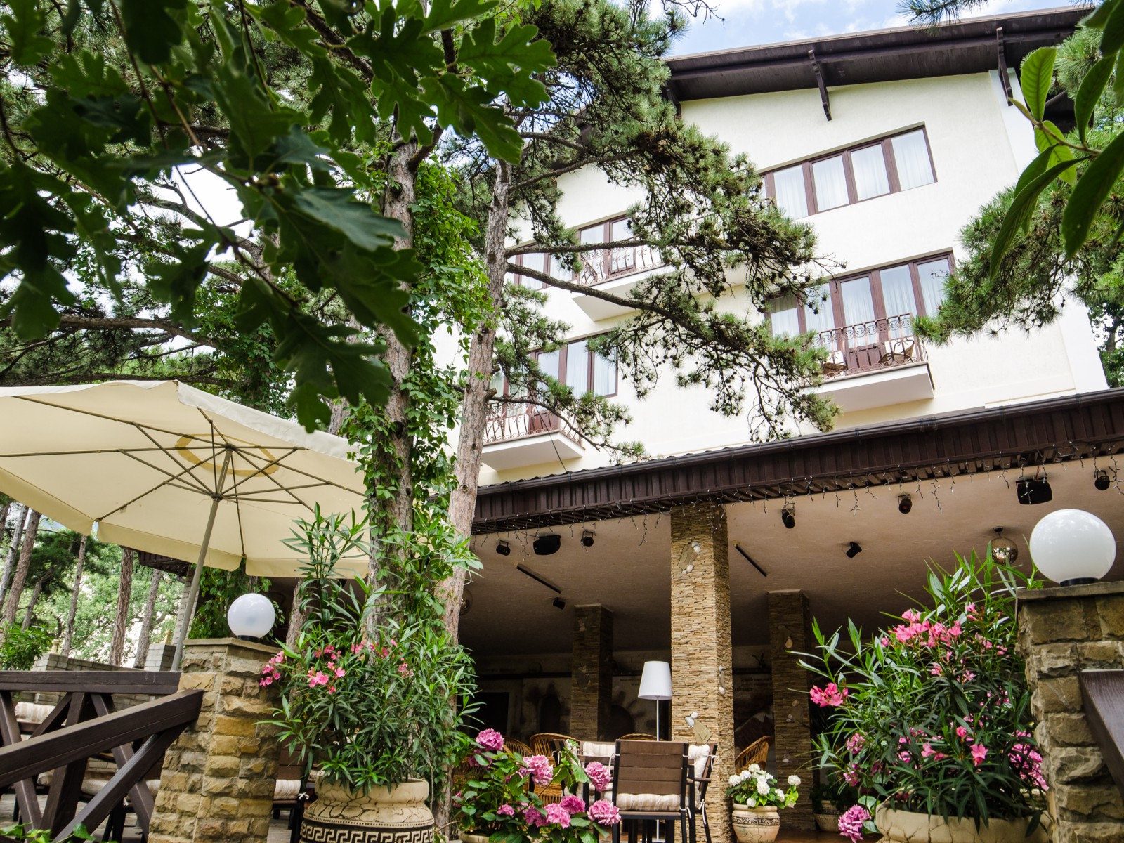 Вилла «Сосновый бор» имеет свою закрытую территорию, 18000 м.кв., утопающую в зелени и шестидесять крымских сосен, лечебно воздействующих на дыхательную систему. На территории имеется охраняемая стоянка на 5 – 6 машин, бунгало, где можно проводить свой досуг, читая книгу или наслаждаясь бокалом крымского вина.