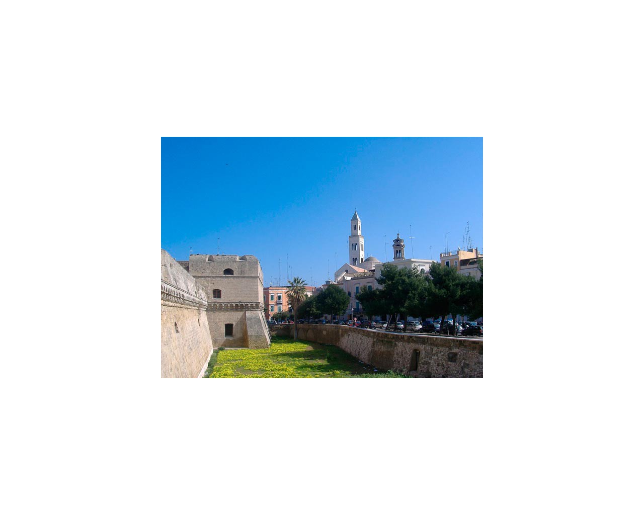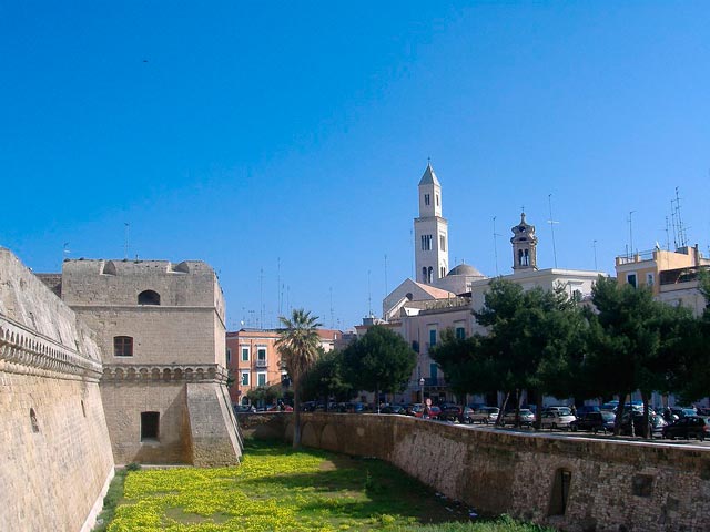 Если пойти вдоль моря, то слева от мыса на пути встанут стены крепости. По воле Карла I она защищала береговую линию провинции Бари. Проект, разработанный в 1279 году Пьером де Аджкоурт, и воплощённый Джованни да Тоуль выполнен в форме многоугольника.