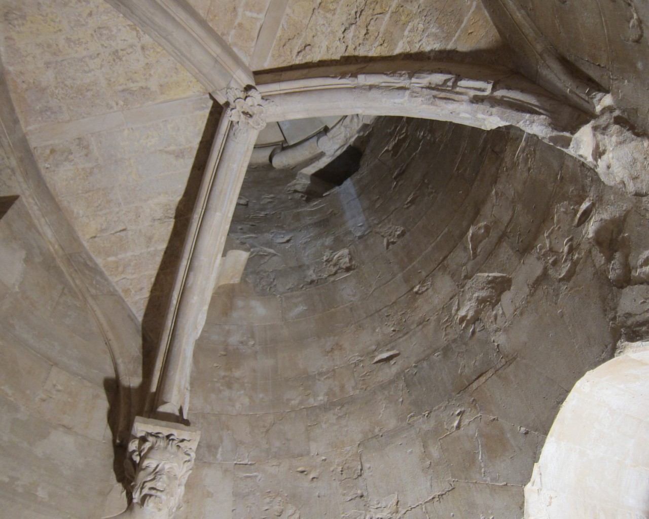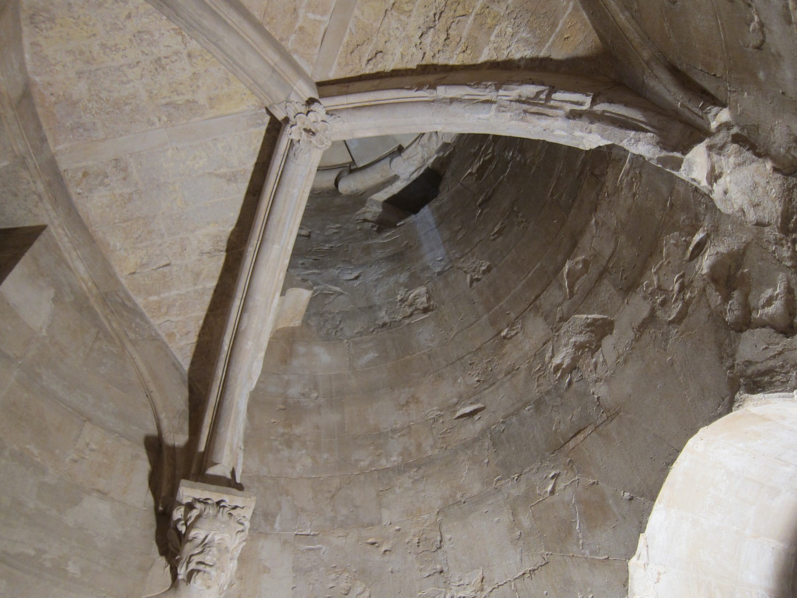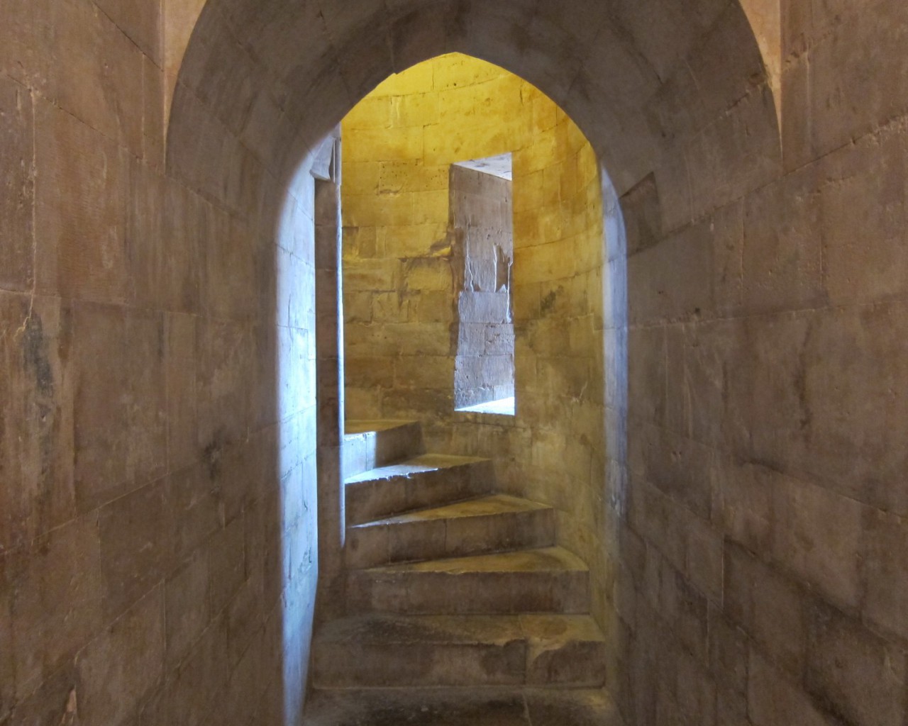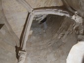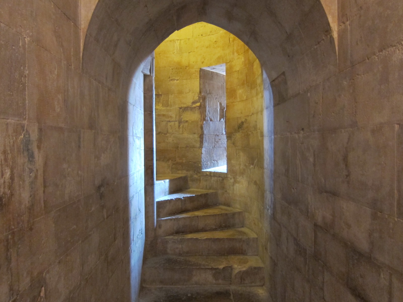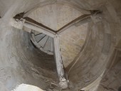 Угловые башни служат в качестве гардеробов, санузлов и винтовых лестниц. Причем обустройство уборных Castel del Monte доказывает высокий уровень санитарных норм в цивилизованном обществе Средних веков. Все туалеты хорошо проветривались по средствам шлицы, проделанной в стенах и промывались водой из баков, установленных на крыше. Интересным фактом является то, что лестницы закручиваются не традиционно в правую сторону, а в левую, подобно физиологии природы, как, например, закручивается вправо панцирь улитки.