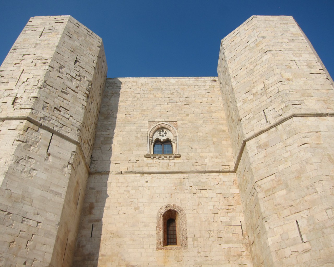 Кастель дель Монте – это двухэтажное сооружение с плоской крышей. Внешне дворец представляет собой правильный восьмиугольник с длиной каждой из сторон, равной 16,5 метрам.