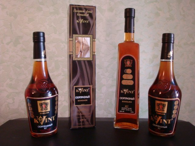 Бренди «KVINT» готовится по специальной технологии с использованием коньячных и винных спиртов, выдержанных в дубовых бочках не менее 1 года. Обладает нарядным золотистым цветом, гармоничным вкусом и ярким цветочным ароматом с лёгкими тонами выдержки.