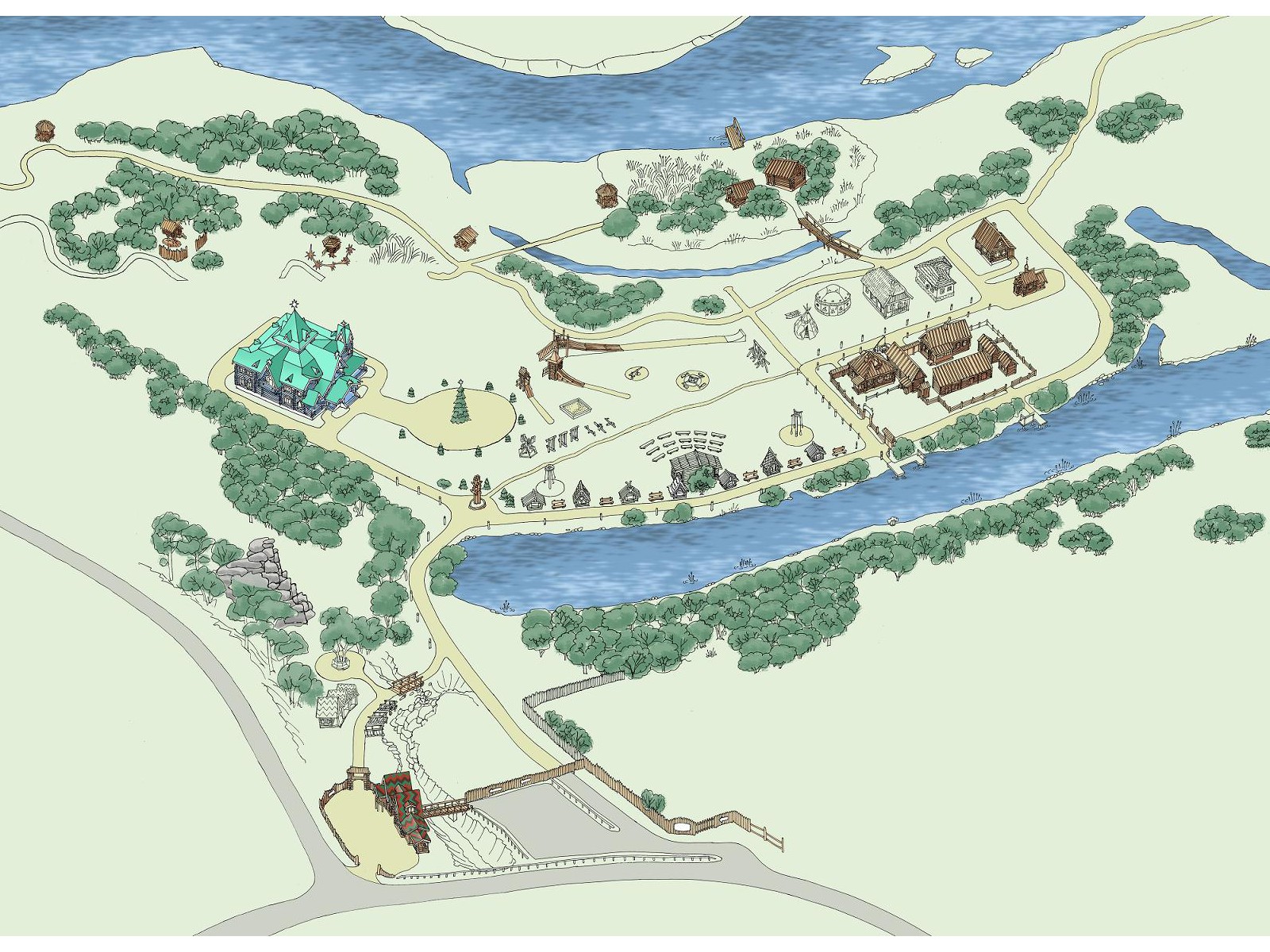 Там будут герои сказов Бажова, русских сказок, интерактивные маршруты, различные мастерские по изготовлению изделий из камня и глины, ферма диких животных Урала, уральское подворье с настоящей крестьянской избой, элементами уральской росписи и скотным двором.