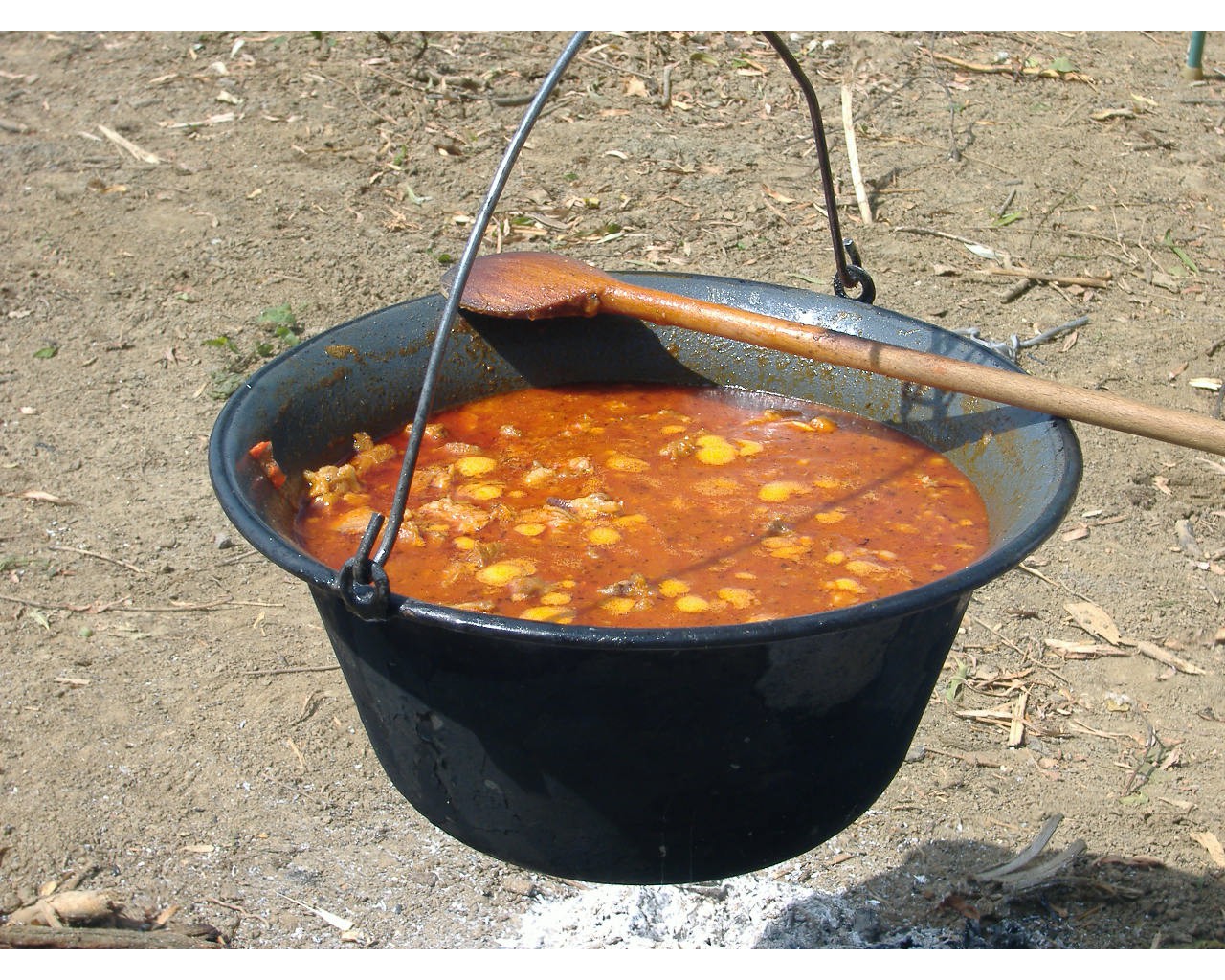 Мясо предварительно надо обжарить в кастрюле или глубокой сковороде на свином сале с луком до образования румяной корочки. После этого в кастрюлю добавляется горячая вода, предварительно обжаренный картофель,томатная паста или свежие помидоры, сладкий перец, мука и доводится до готовности.