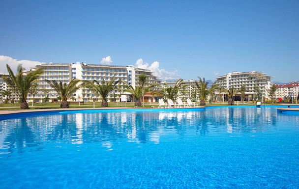 Общая площадь территории отеля, включающая большое количество прогулочных аллей, искусственных водоемов, мест отдыха, детских площадок и торгово-развлекательную зону, составляет более 24 Га.