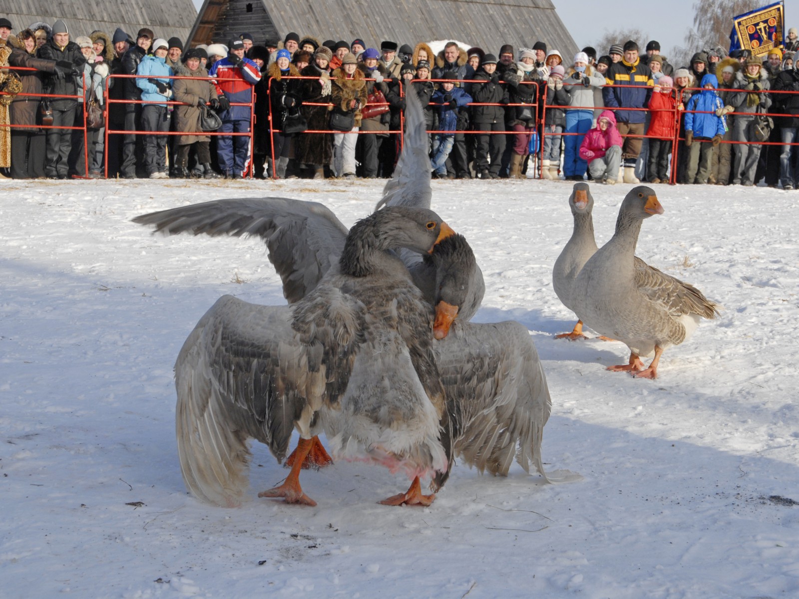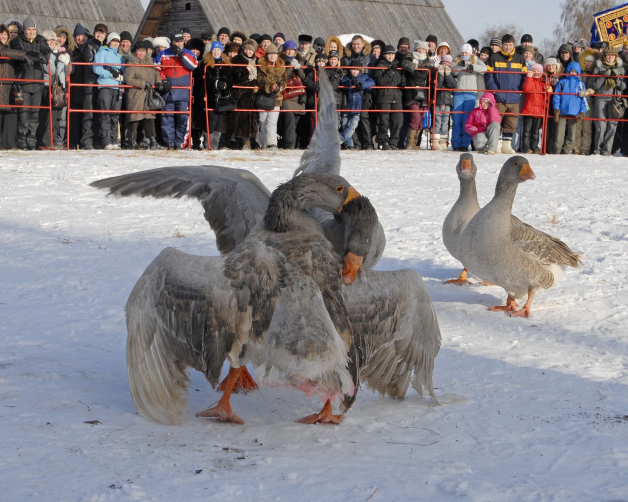 Если вы думаете, что бои гусаков — людская прихоть, очень ошибаетесь. Гусь – птица гордая. Он живет так, как ему велит чувство. Весной, как и люди, гуси влюбляются. Для продолжения рода гусак выбирает себе пару – любку, любушку, любаву. За нее идет на бой, чтобы отстоять в борьбе с чужаком. Бойцы все, как на подбор, из самого города Павлова Нижегородской области. Гусиные бои, бескровные состязания, на Руси известны с времен Петра I. Павловские гусеводы до сих пор сохранили старинную традицию, а Владимиро-Суздальский музей-заповедник сделал ее зрелищем, достойным внимания многочисленных туристов.