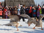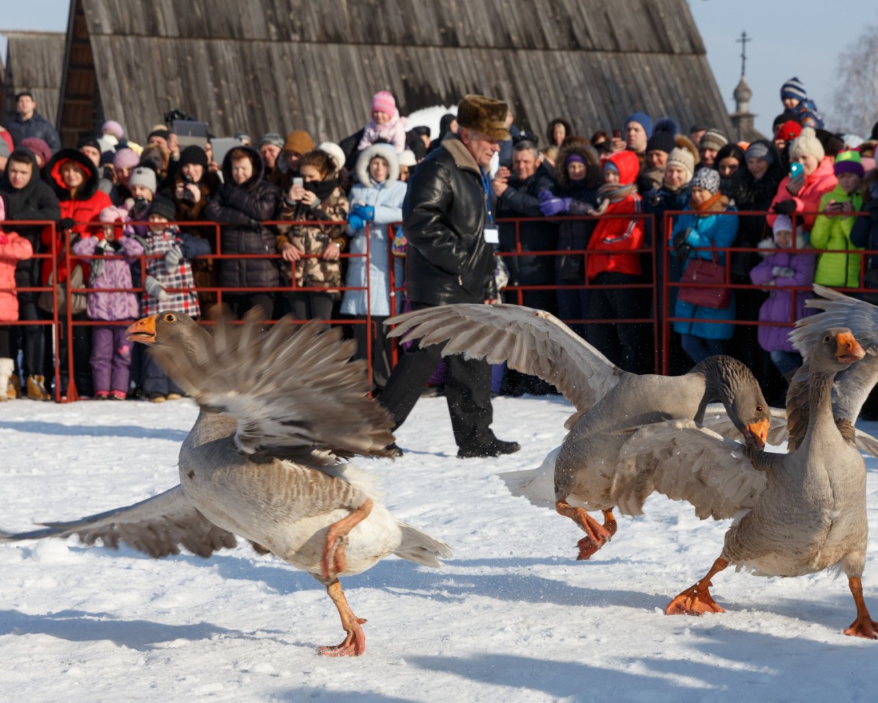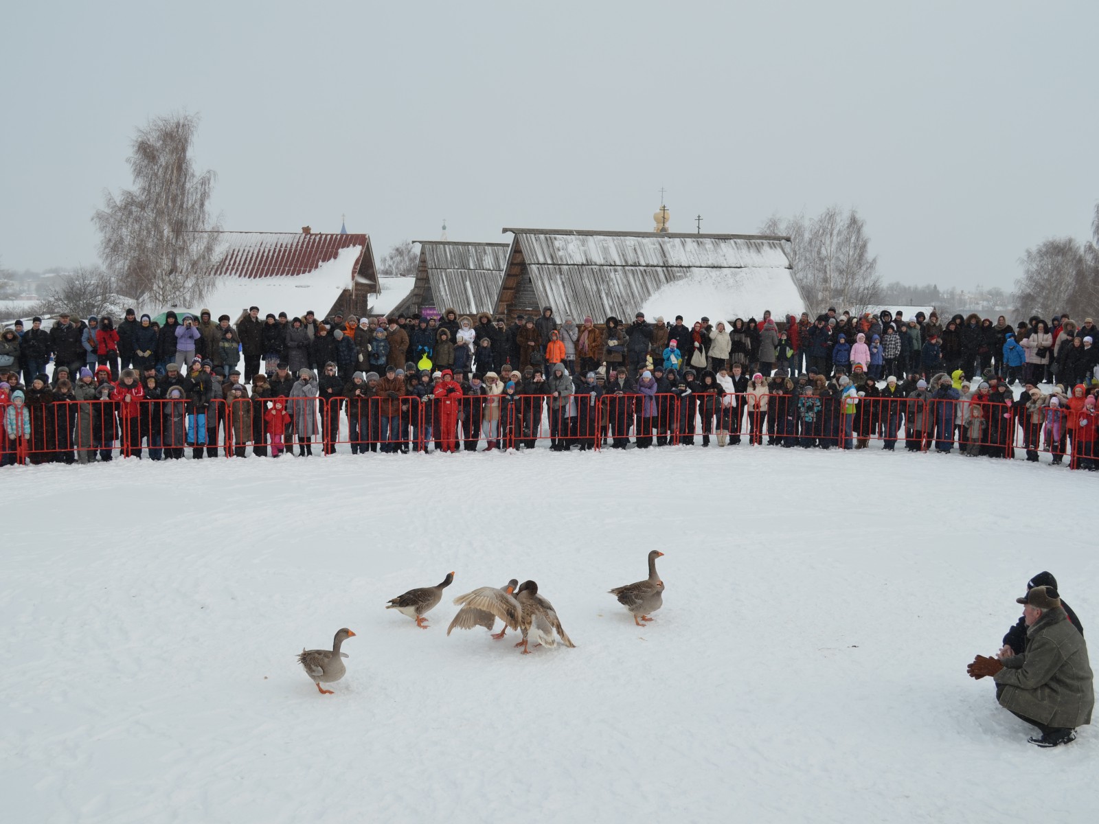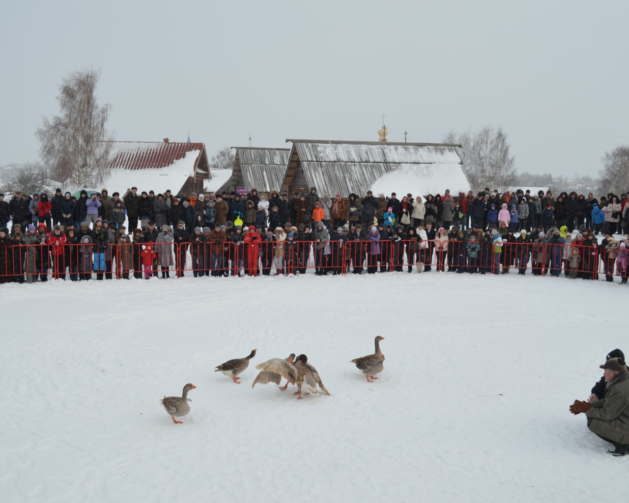 К нам, как обычно, приеехали знаменитые нижегородские гусеводы. И мы вновь стали свидетелями этого захватывающего зрелища - гусиной «потехи за любовь».
