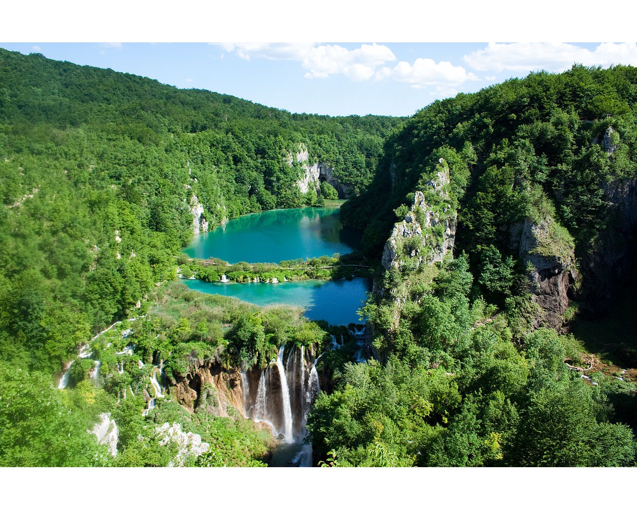 Плитвицкие озёра (Плитвичка-Езера) — национальный парк в Хорватии, расположенный в центральной части страны, в Лицко-Сеньской (90,7 %) и Карловацкой жупаниях (9,3 %). Воды реки Корана, текущие сквозь известняк, за тысячи лет нанесли барьеры травертина, образовав естественные плотины, которые, в свою очередь, создали ряд живописных озёр, водопадов и пещер.