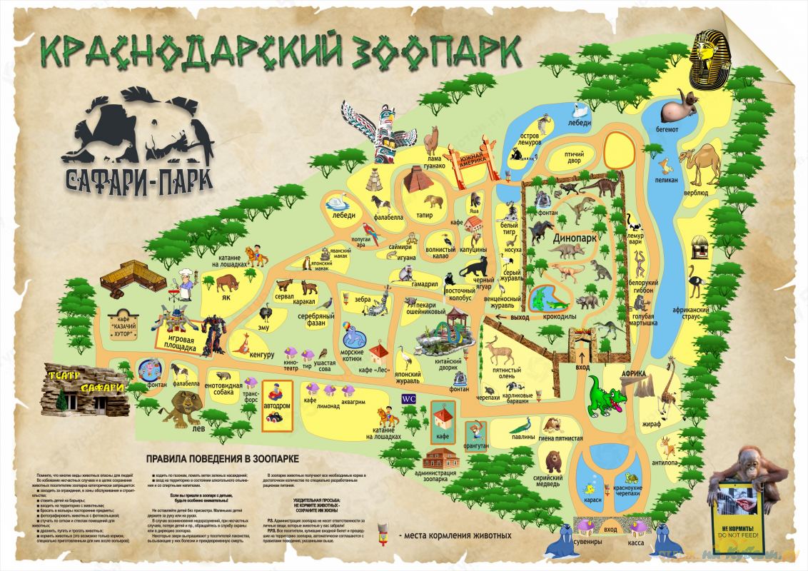 Территория парка – 9 гектаров и для его обустройства проделана огромная работа. Посетители зоопарка восхищаются не только животными, но и красотой оформления территории, его цветниками и постройками.