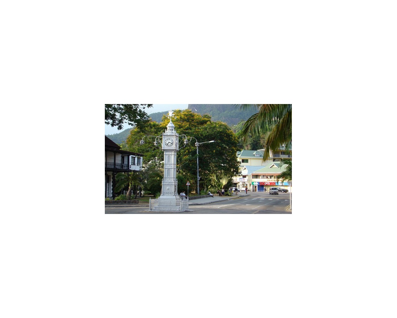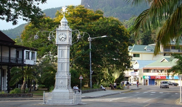 Часовая башня, расположенная на Маркет-стрит, была возведена в начале 20 века и выступает в роли исторического и архитектурного памятника. Она представляет собой железное сооружение, выполненное в форме конуса, имеющее высоту 30 метров и диаметр основания – 5 метров. На верхушке башни расположена великолепная смотровая площадка, с которой открывается чудесная панорама Виктории – столицы острова Маэ. Ежедневно в 12:00 из башни доносится бой курантов, который оповещает жителей города о наступлении обеденного перерыва. В 1975 году сооружение было реставрировано – обновлена внутренняя отделка и заменены механизмы циферблата.